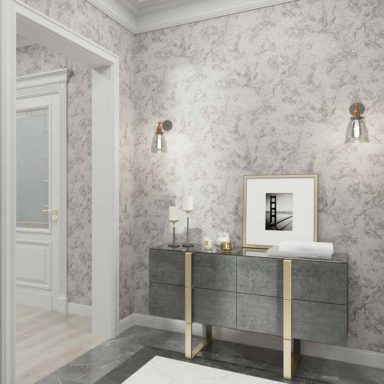 Купить Обои флизелиновые венецианская штукатурка серая, метровые, для прихожей, Лёд