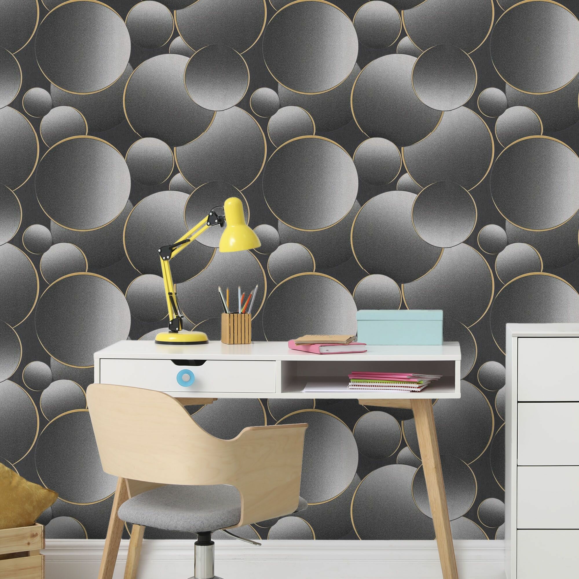 Купить Обои флизелиновые, круги тёмно-серые, метровые, в детскую, Баблс