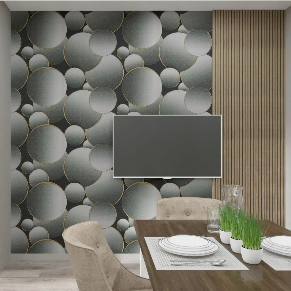 Обои винил на флизелине, круги серые, метровые, для спальни, Баблс