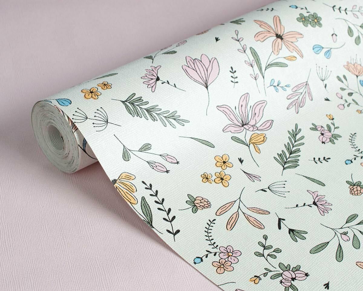 Обои бумажные ( дуплекс ) без ПВХ / ЭКО / можно В детскую И спальню /цветы прованс на белом фоне / 0.53х10м интересное: