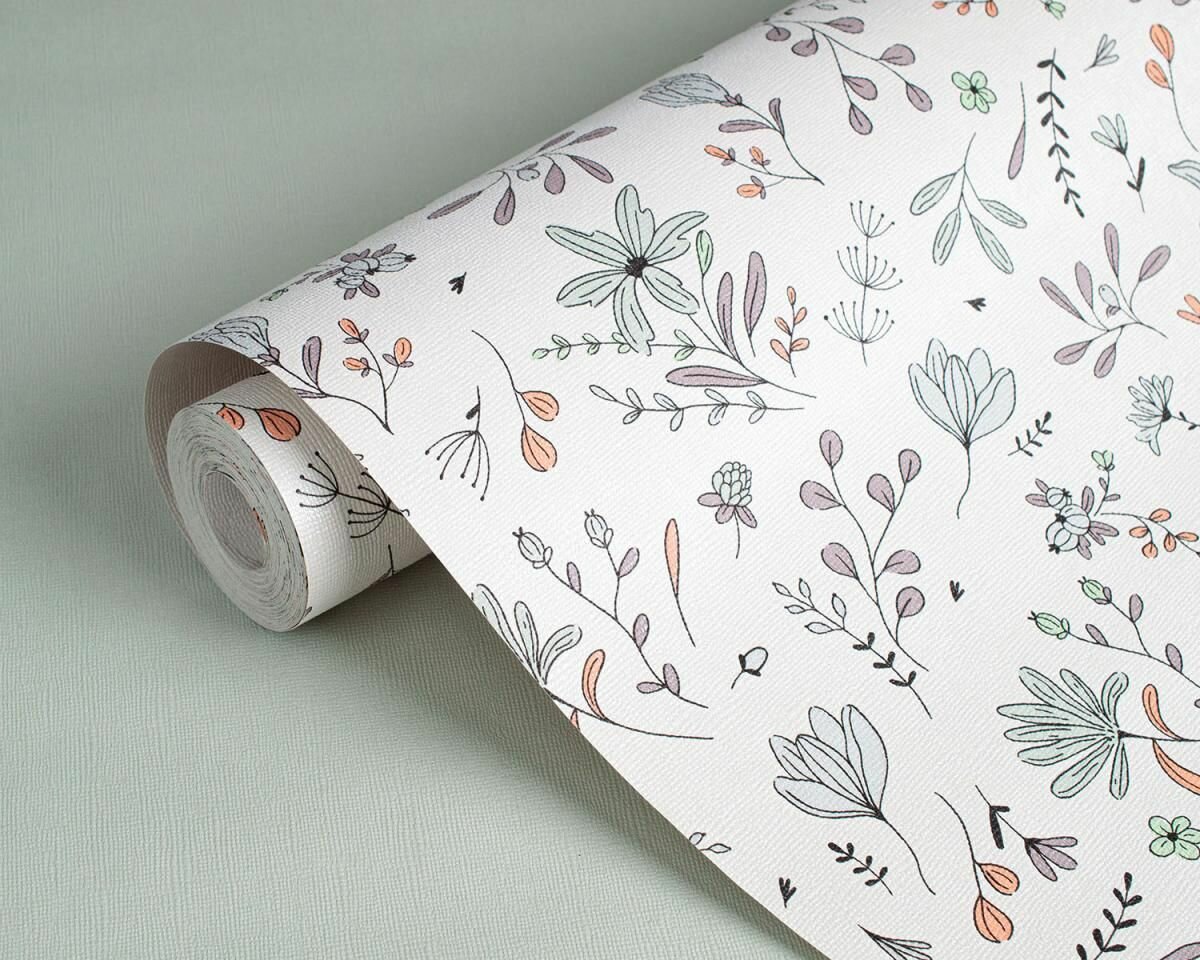 Обои бумажные ( дуплекс ) без ПВХ / ЭКО / можно В детскую И спальню /цветы прованс на белом фоне / 0.53х10м