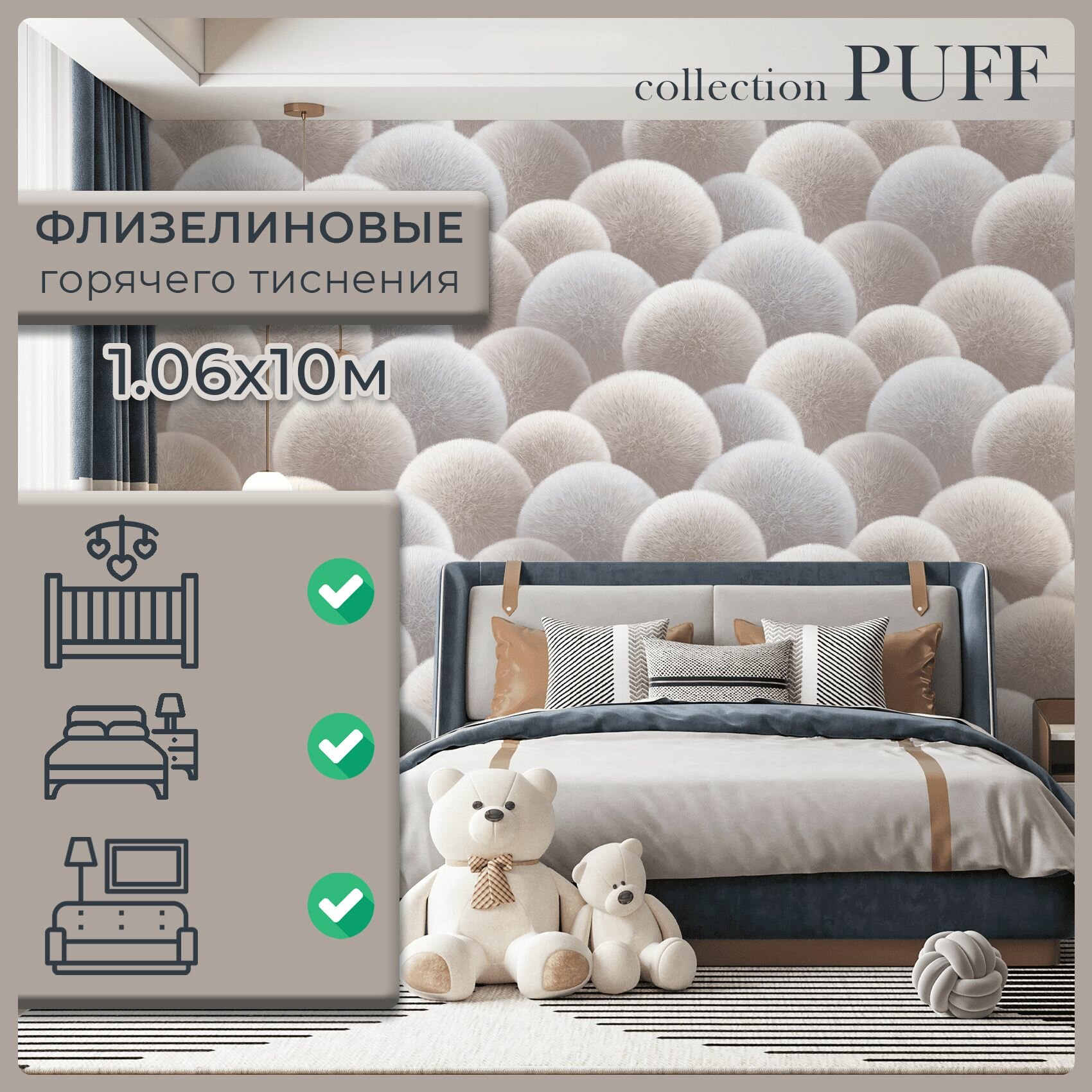 Обои виниловые на флизелине 1,06, в детскую, AnturAGe "Puff", AN8889-11