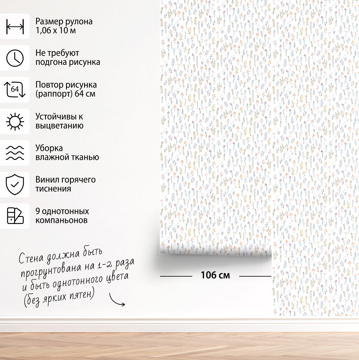 СохранитьОбои флизелиновые виниловые Provance (Moda Interio), прованс веточки разноцветные, для гостиной, метровые интересное:
