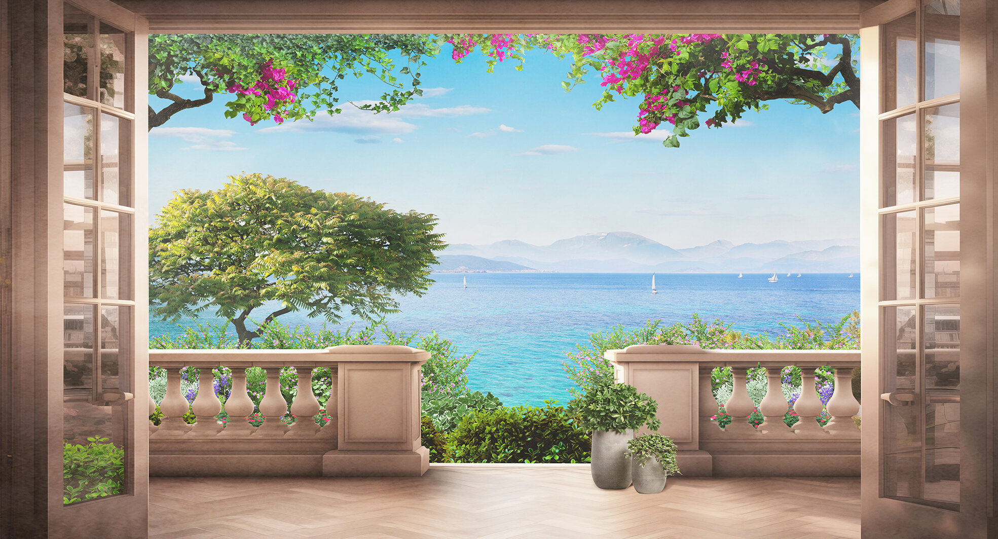 СохранитьФотообои на стену Фотообойкин "Красивая терраса" 500х270 см интересное: