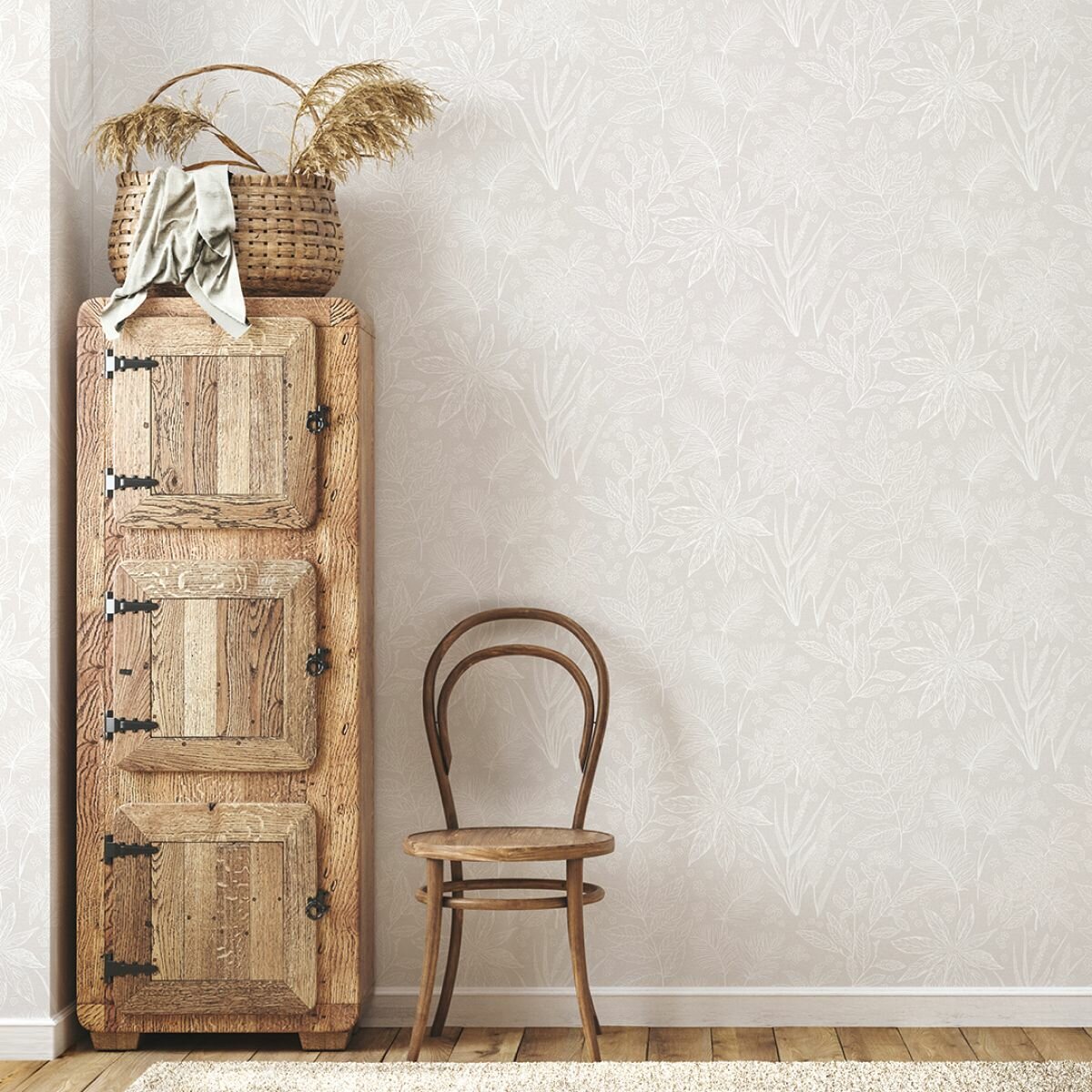 Купить Обои флизелиновые, листья белые на бежевом, метровые, для гостиной, Botanicus