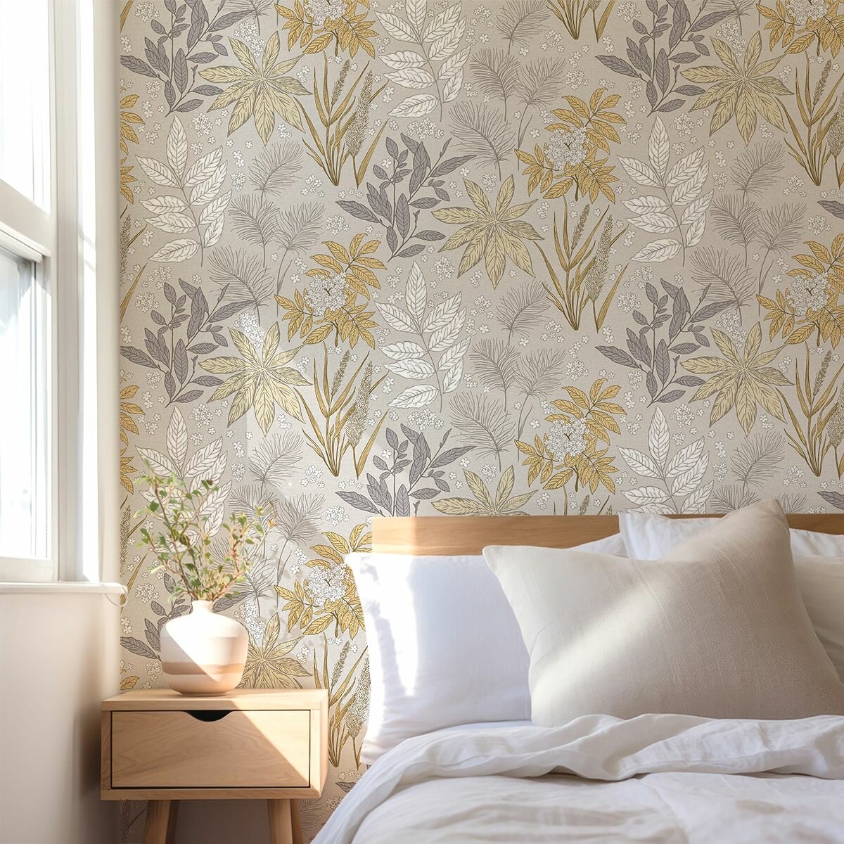 Обои винил на флизелине, листья карамельные на светлом, метровые, для спальни, Botanicus