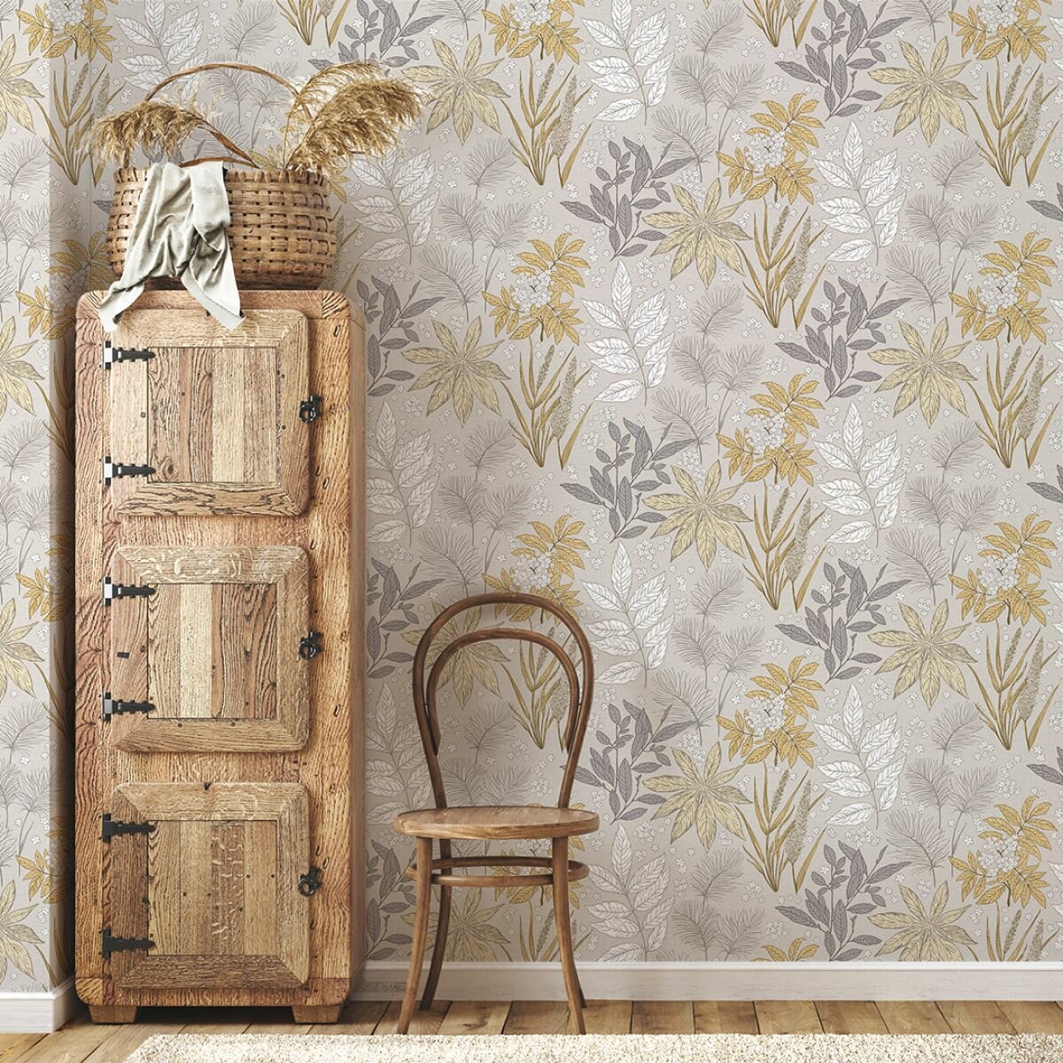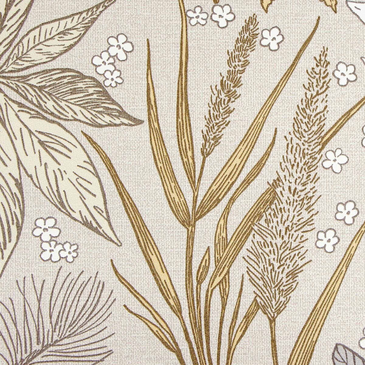Обои флизелиновые, листья белые на бежевом, метровые, для гостиной, Botanicus