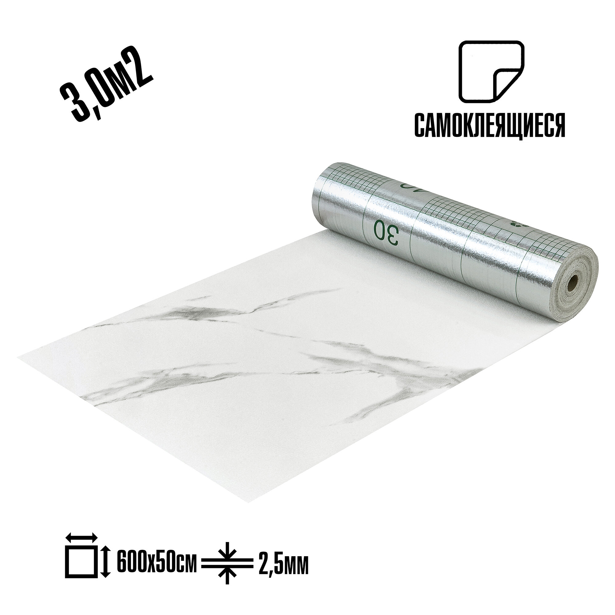 Самоклеящиеся теплоизоляционные обои LAKO DECOR 50x600см, цвет Светло-серый мрамор, толщина 2,5мм