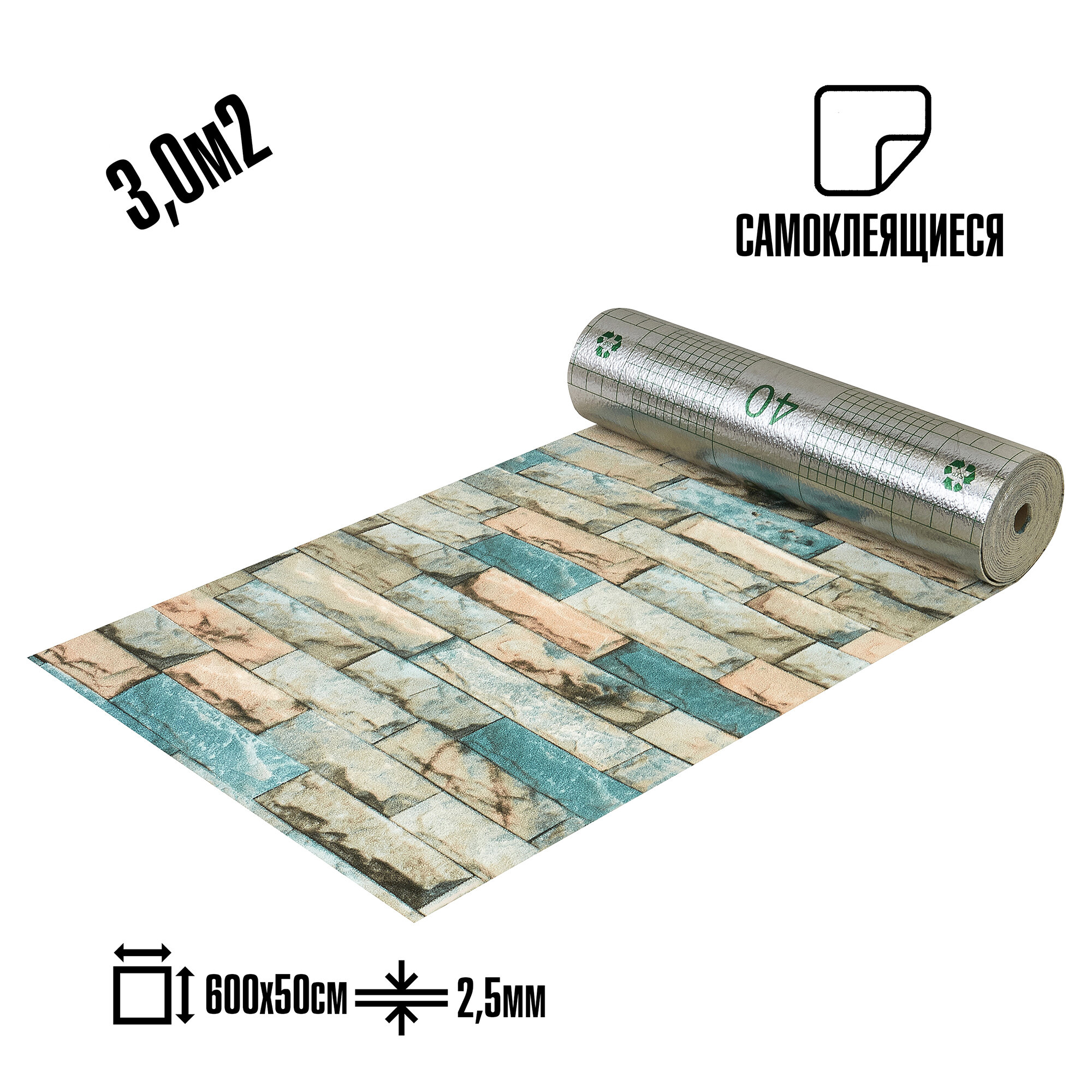 Самоклеящиеся термоизоляционные обои LAKO DECOR 50x600 см, толщина 2,5 мм, Вермонт