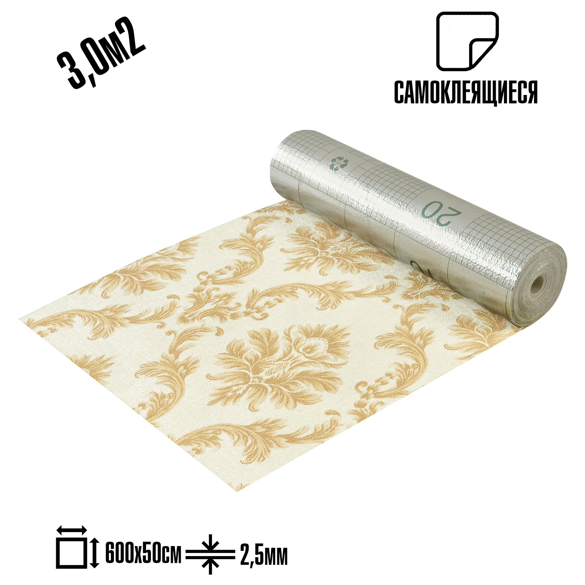 Самоклеящиеся термоизоляционные обои LAKO DECOR 50x600 см, толщина 2,5 мм, Барокко мра3