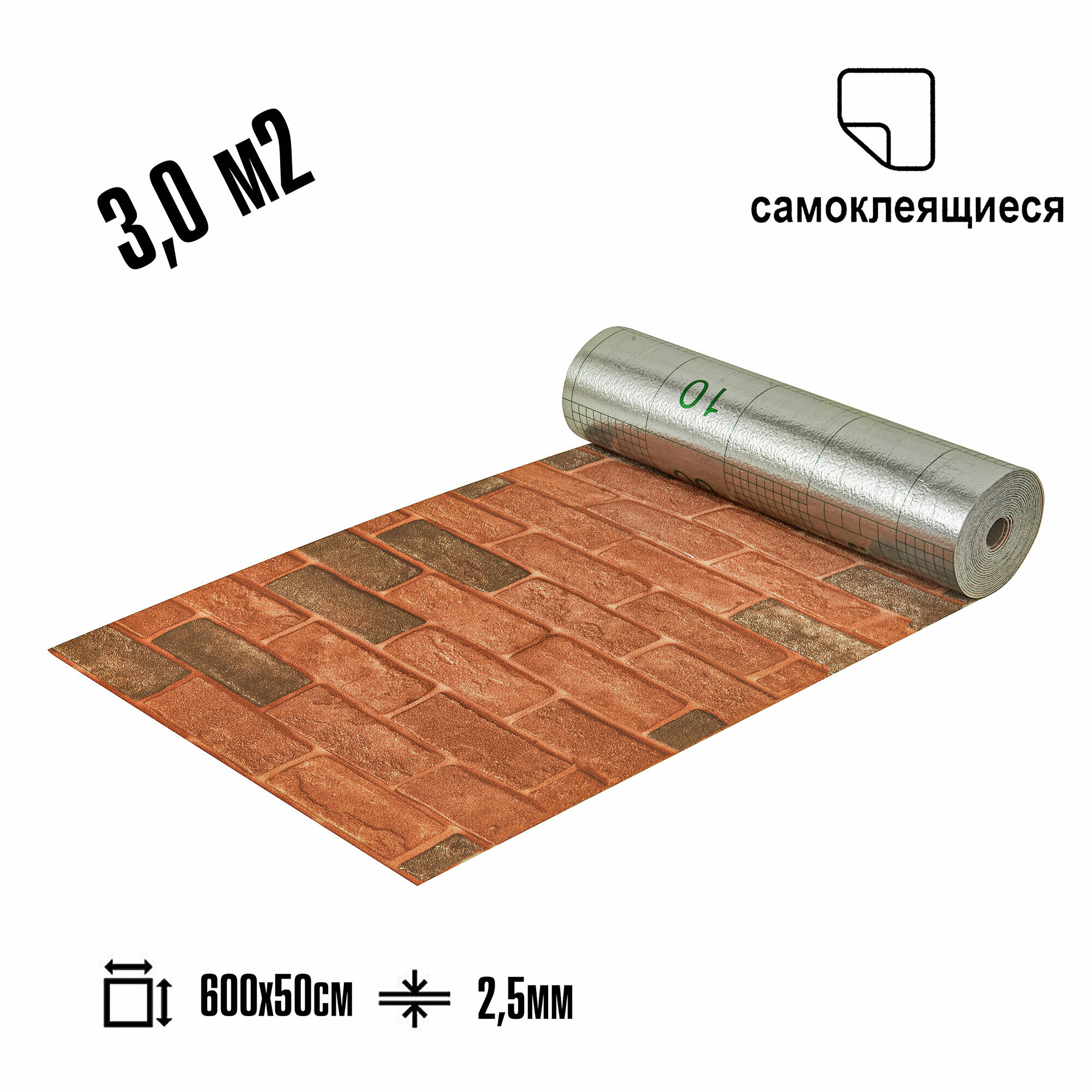 Самоклеящиеся теплоизоляционные обои LAKO DECOR 50x600см, цвет красно-коричневый, толщина 2,5мм