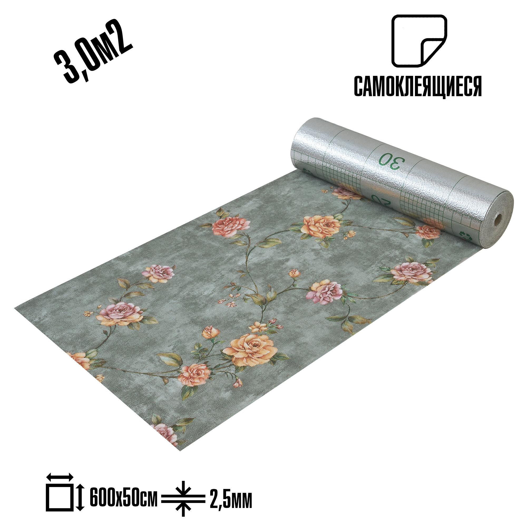 Самоклеящиеся термоизоляционные обои LAKO DECOR 50x600 см, толщина 2,5 мм, Вермонт