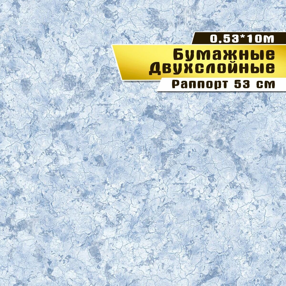 Обои без ПВХ бумажные дуплекс без подбора рисунка под мрамор бетон штукатурка кракелюр голубые лофт 0,53х10м эко, Д813-01