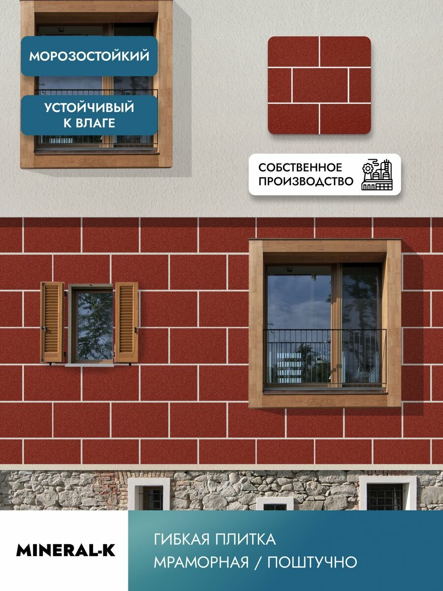 Гибкая плитка с защитной плёнкой - 3 м²/красная сиена
