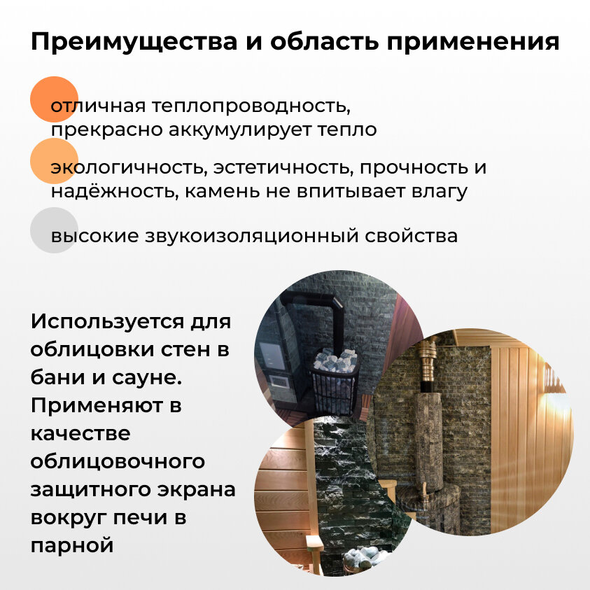 Плитка из талькохлорита Рваный камень (облицовочный) натуральный камень для отделки бани и сауны, 150x50x20 мм, упаковка 33 шт интересное: