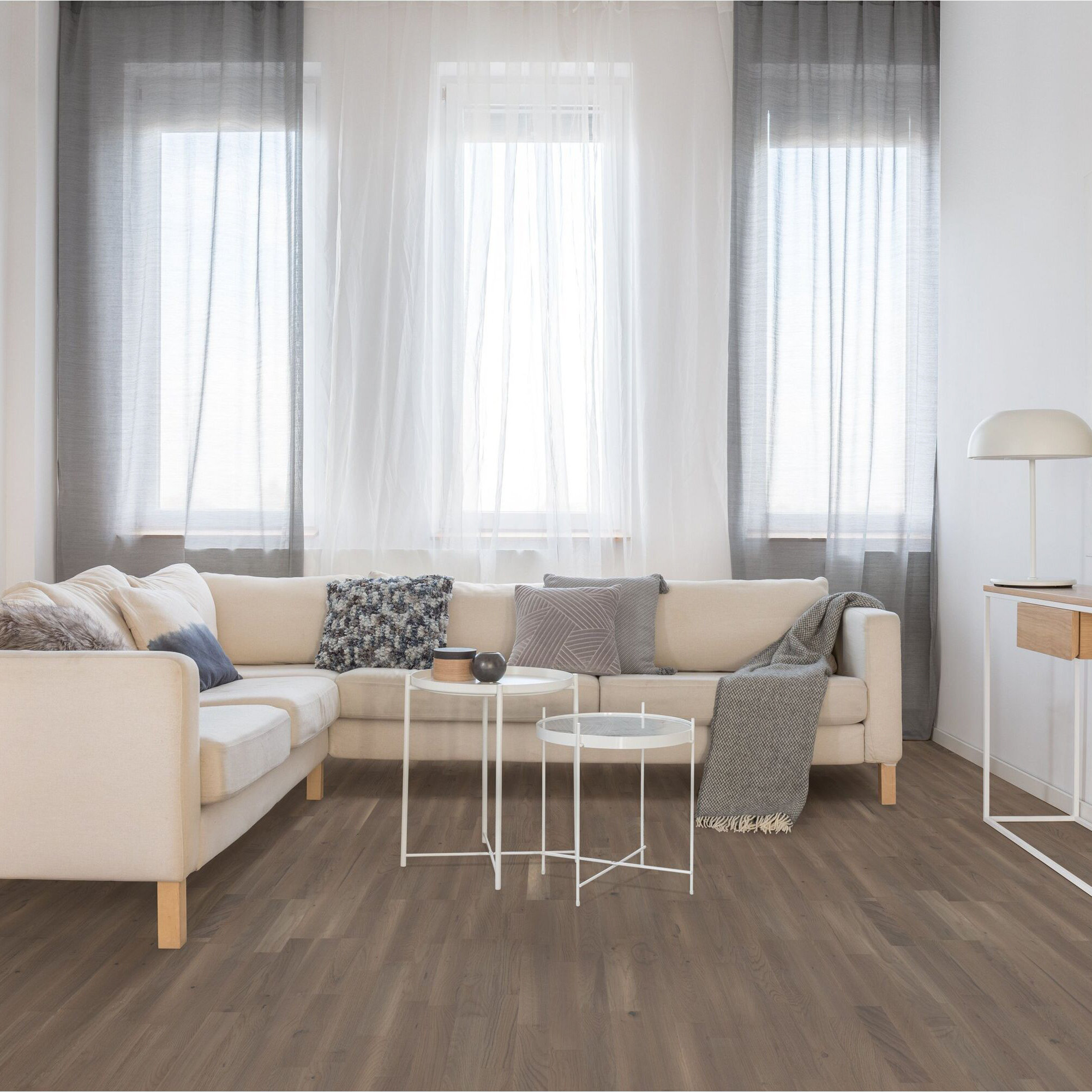 Купить Паркетная доска Tarkett Samba Дуб графит браш трехполосная 14 мм 1,307 кв.м