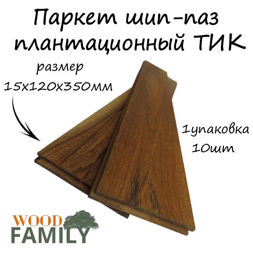 Купить Паркет шип-паз плантационный ТИК 15х120х350мм/10шт в упаковке (0,42м2)