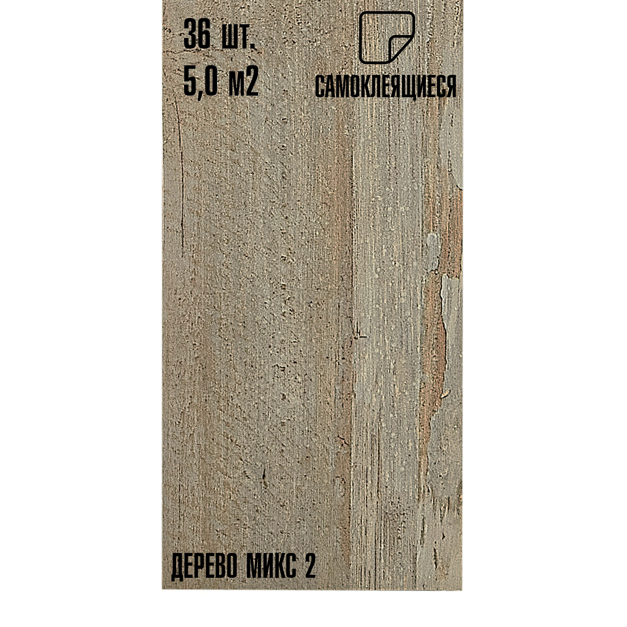 Мега-комплект 36 шт. Самоклеящейся ПВХ плитки LAKO DECOR "Состаренное дерево", толщина 2мм, 5м²
