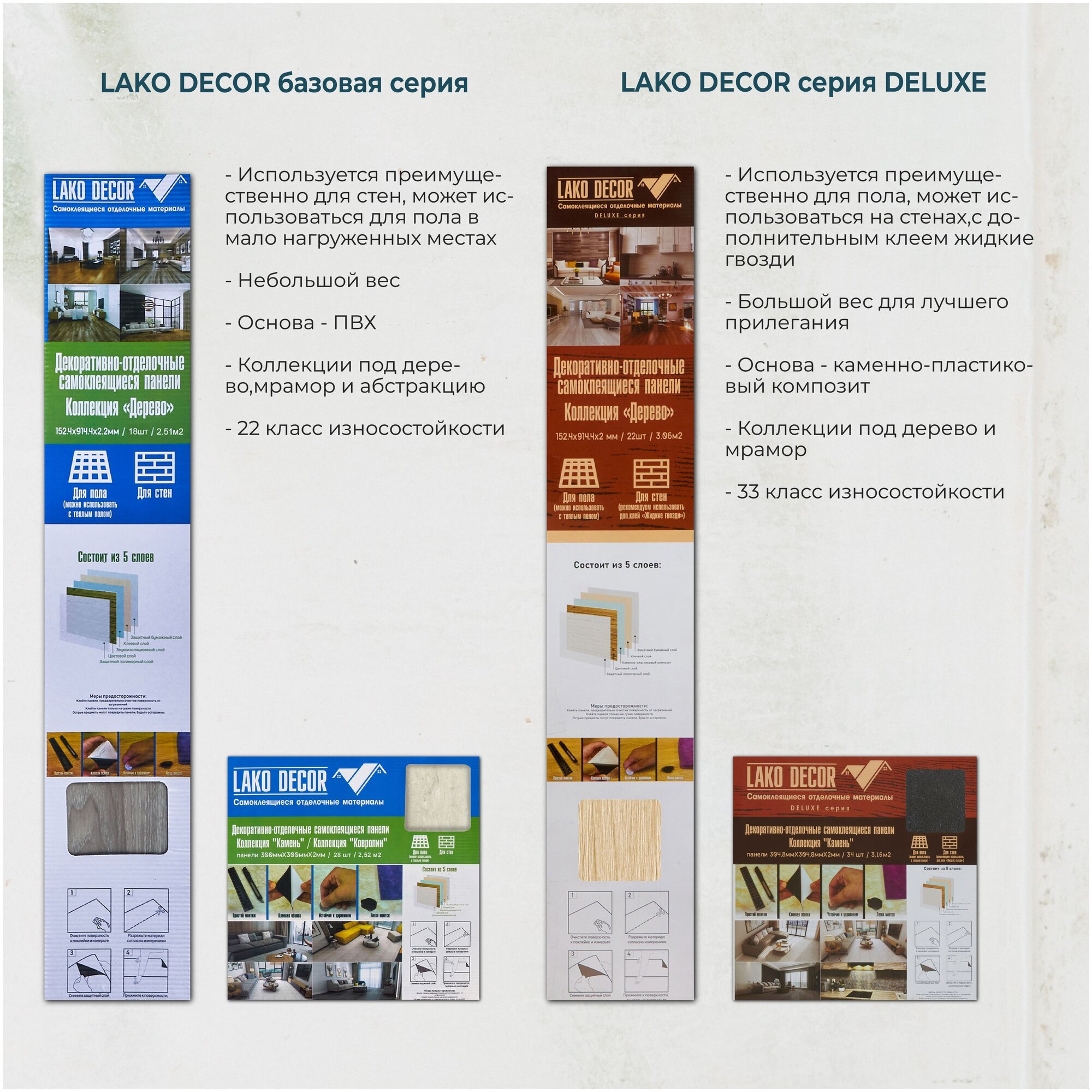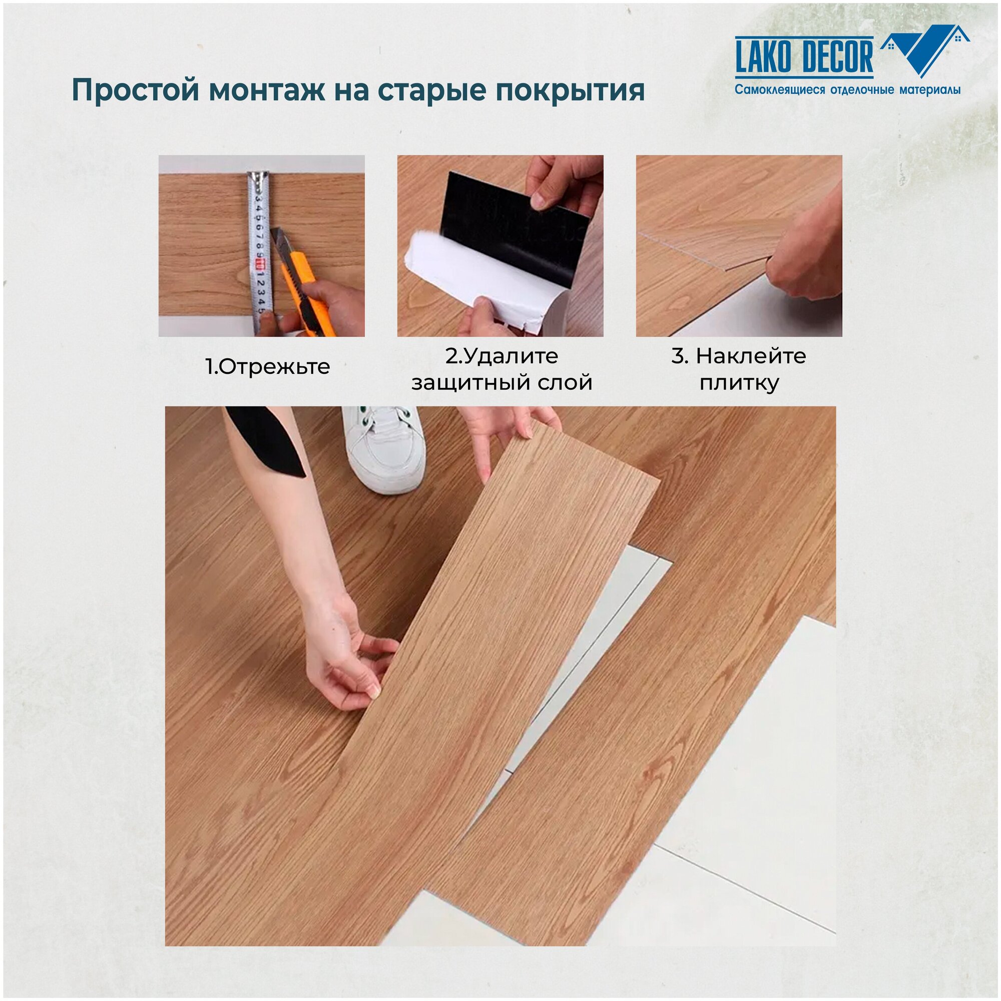 | Дополнительная информация | Самоклеящаяся плитка LVT, при монтаже на стены использовать жидкие гвозди. |