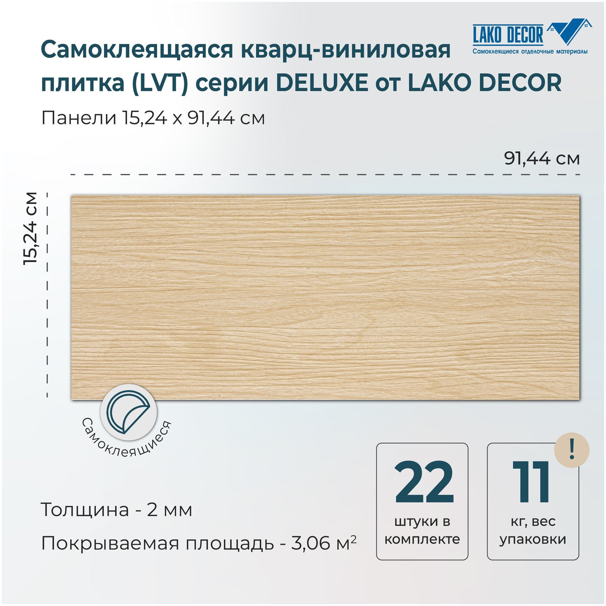 LVT Самоклеящаяся ПВХ плитка LAKO DECOR "Дуб натур" серии Делюкс, толщина 2мм, площадь 3,06м²
