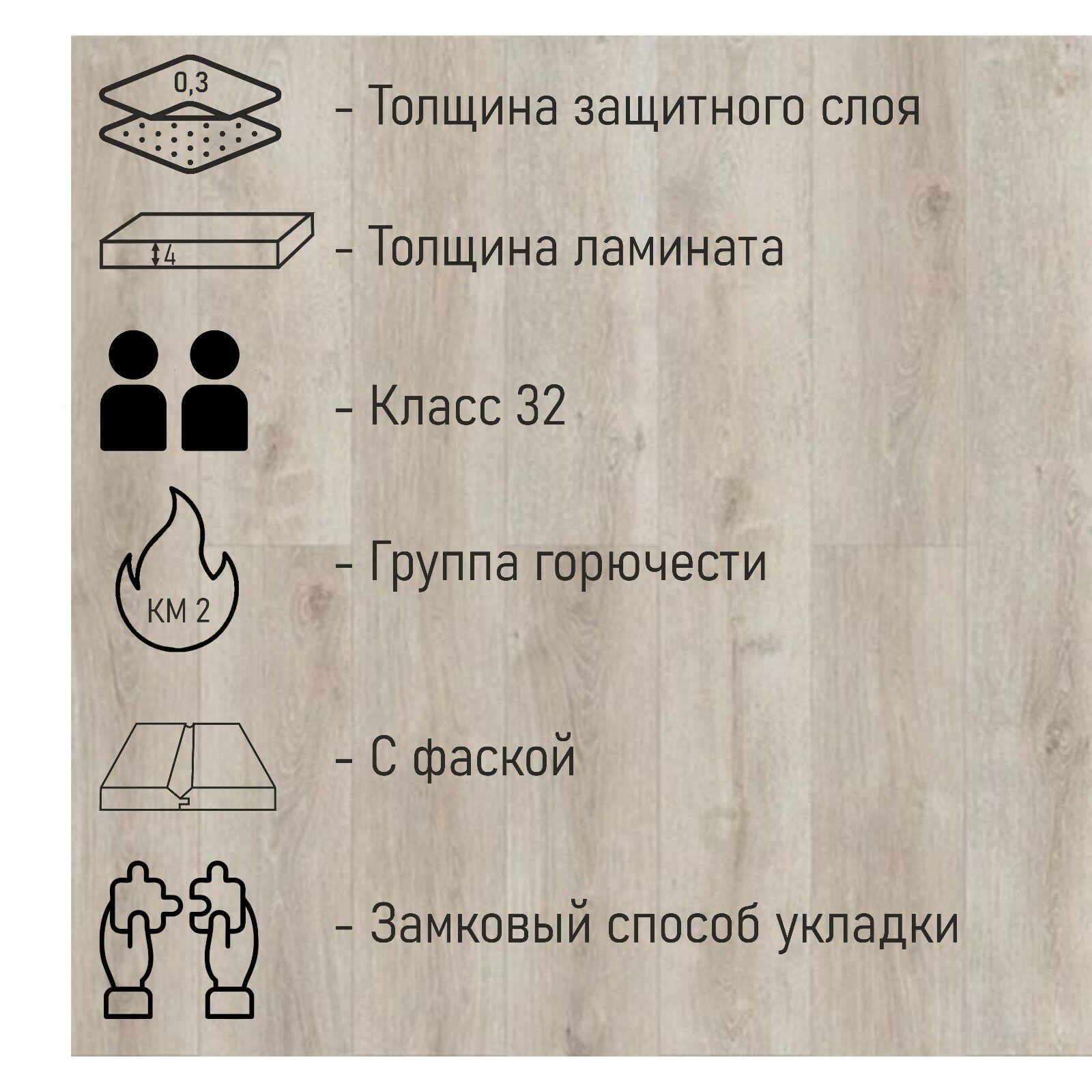 Кварцевый ламинат Fargo Bevel Дуб Бастион 50-6191-41 (1524*182*0,5/6 мм)(1,664 м2, 6 шт), Ф4, 33/42 класс