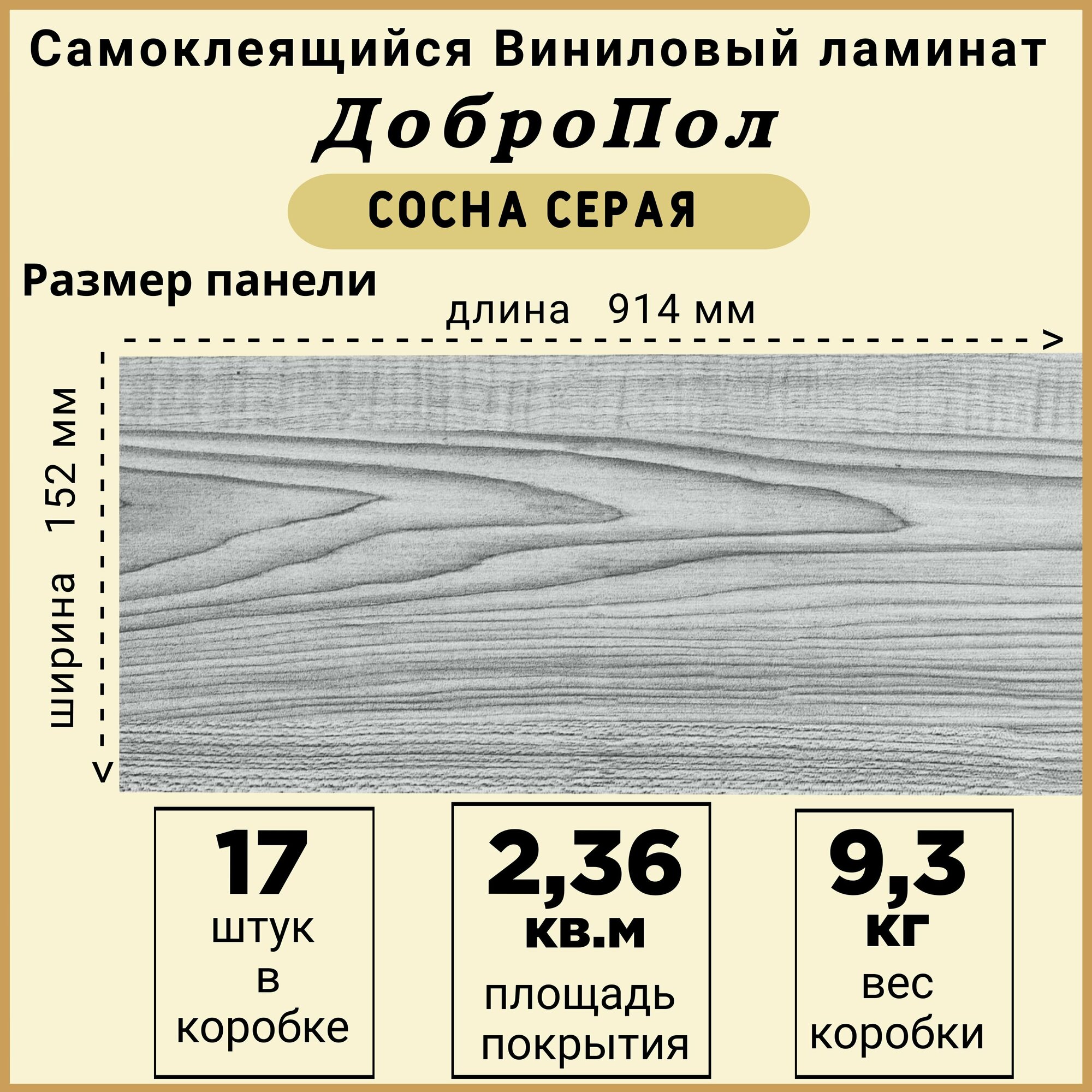 Ламинат LVT ДобрoПол FD811 самоклеящийся 914х152х2,2мм 17шт Сосна серая