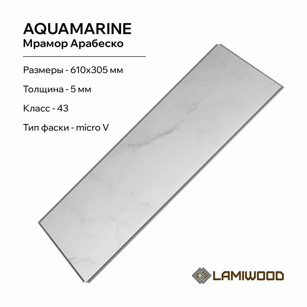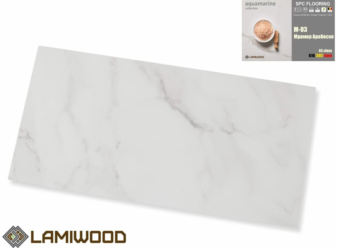 СохранитьКварц-виниловый ламинат 5 мм, с подложкой LAMIWOOD AQUAMARINE M-03 Мрамор Арабеско (SPC) интересное:
