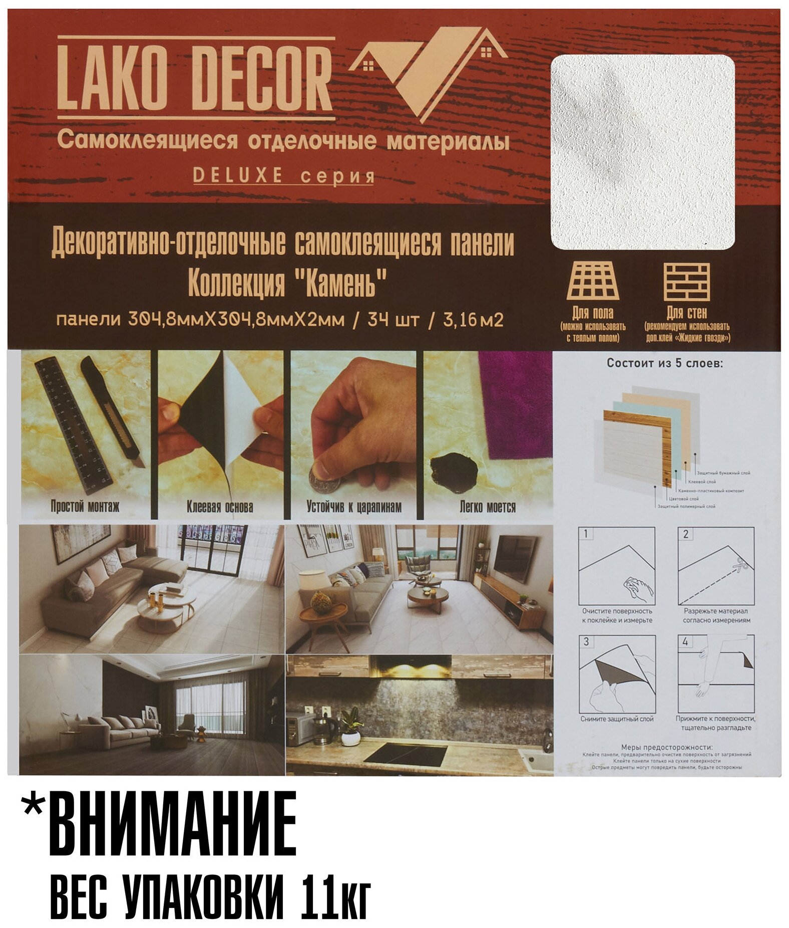 LVT Самоклеящаяся ПВХ плитка LAKO DECOR "Стоун Амадей" серии Делюкс, толщина 2мм, площадь 3,15м²