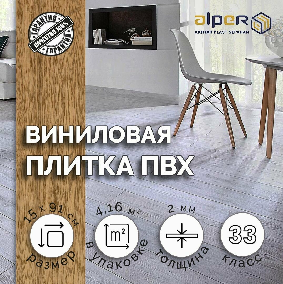 Плитка ПВХ ALPER LVT, 15*91 см. AF-100, упаковка 4,16 м2