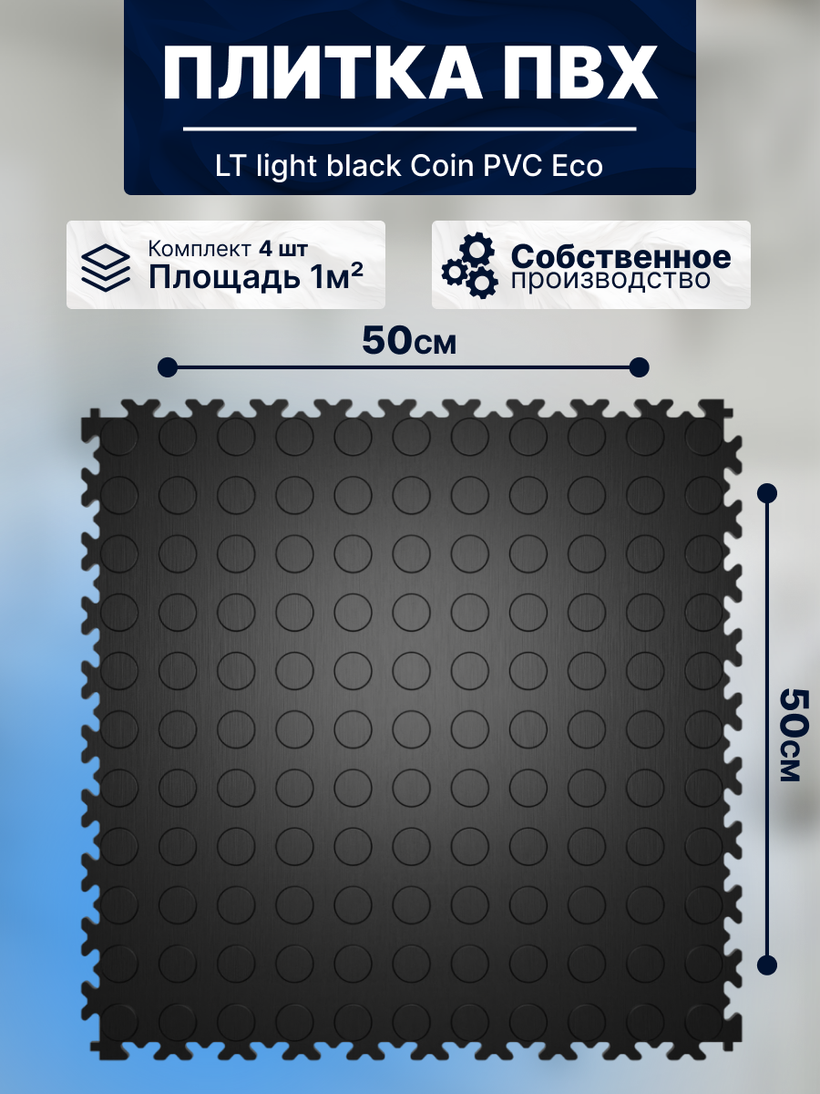 Плитка ПВХ модульная на пол LT light black Coin PVC Eco 500X500X5мм 43 класс интересное: