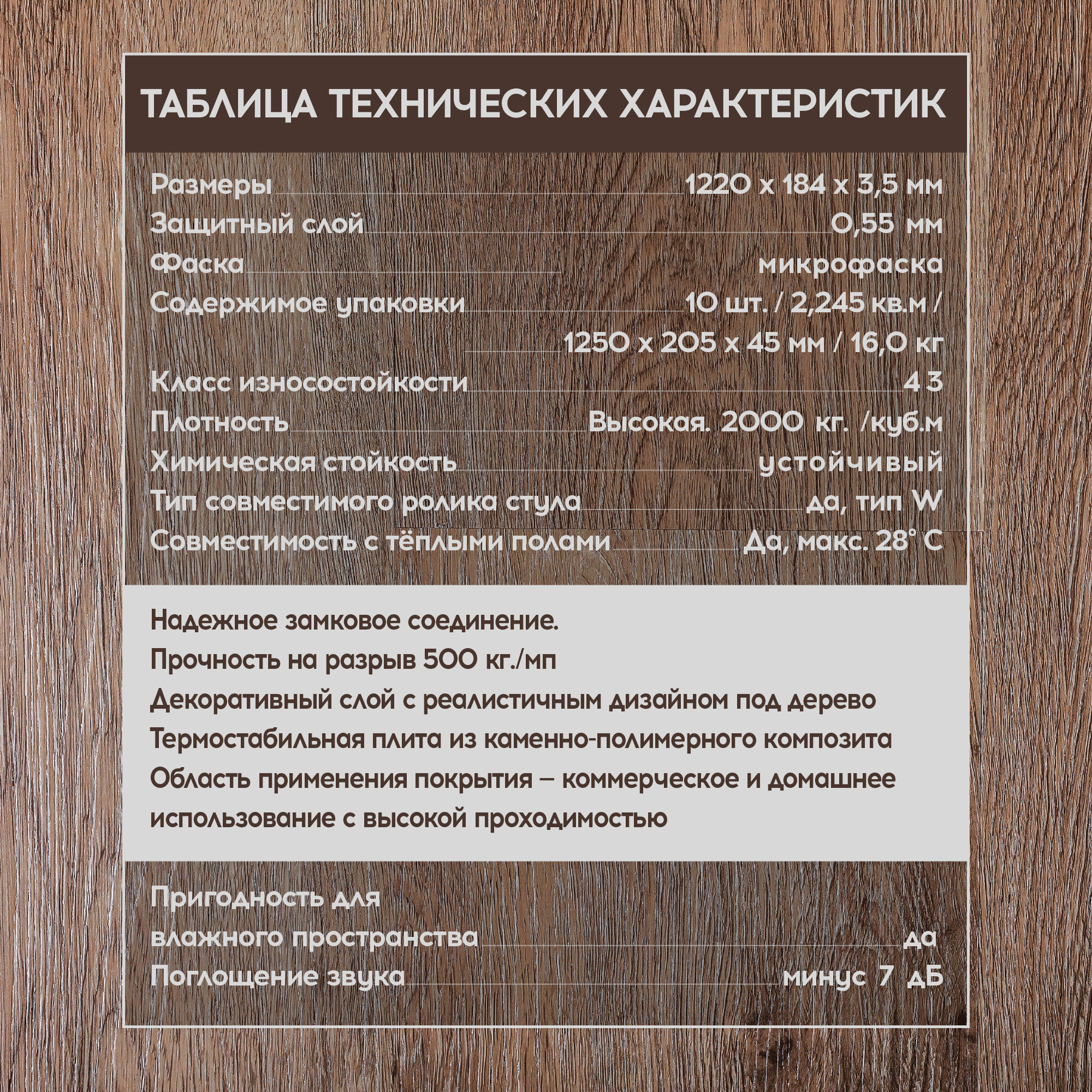 SPC плитка Linderwood Болу 43 класс толщина 4 мм 2.23 м², цена за упаковку