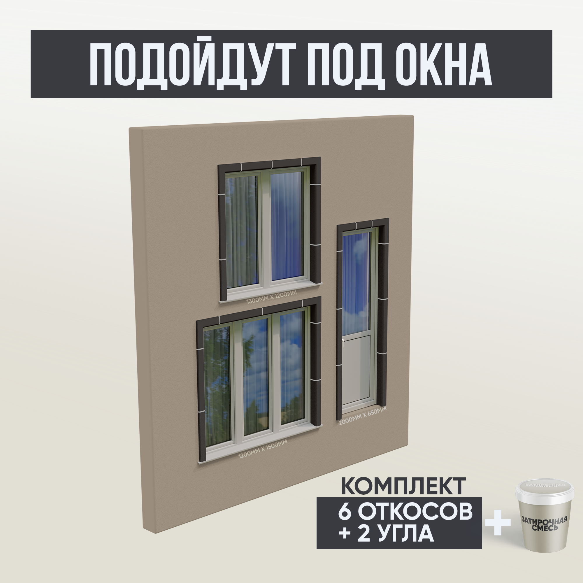 Оконные Откосы Утепленные, Фасадные, Набор на окно (с углами), цвет Шоколад, 6 откосов + 2 угла, глубина 260 мм интересное: