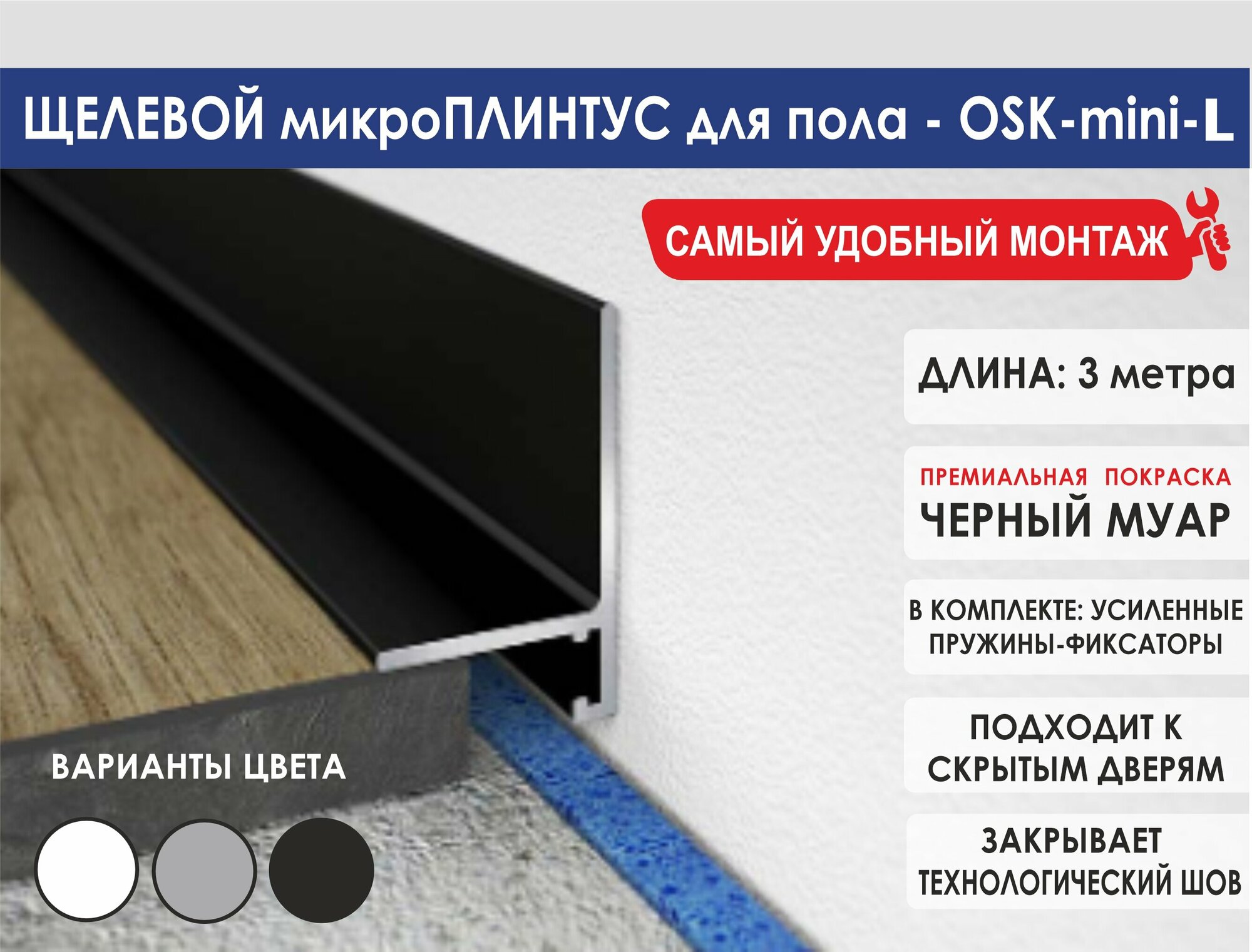Купить Микроплинтус OSKprofil для пола, цвет черный, 3 метра, матовый алюминий