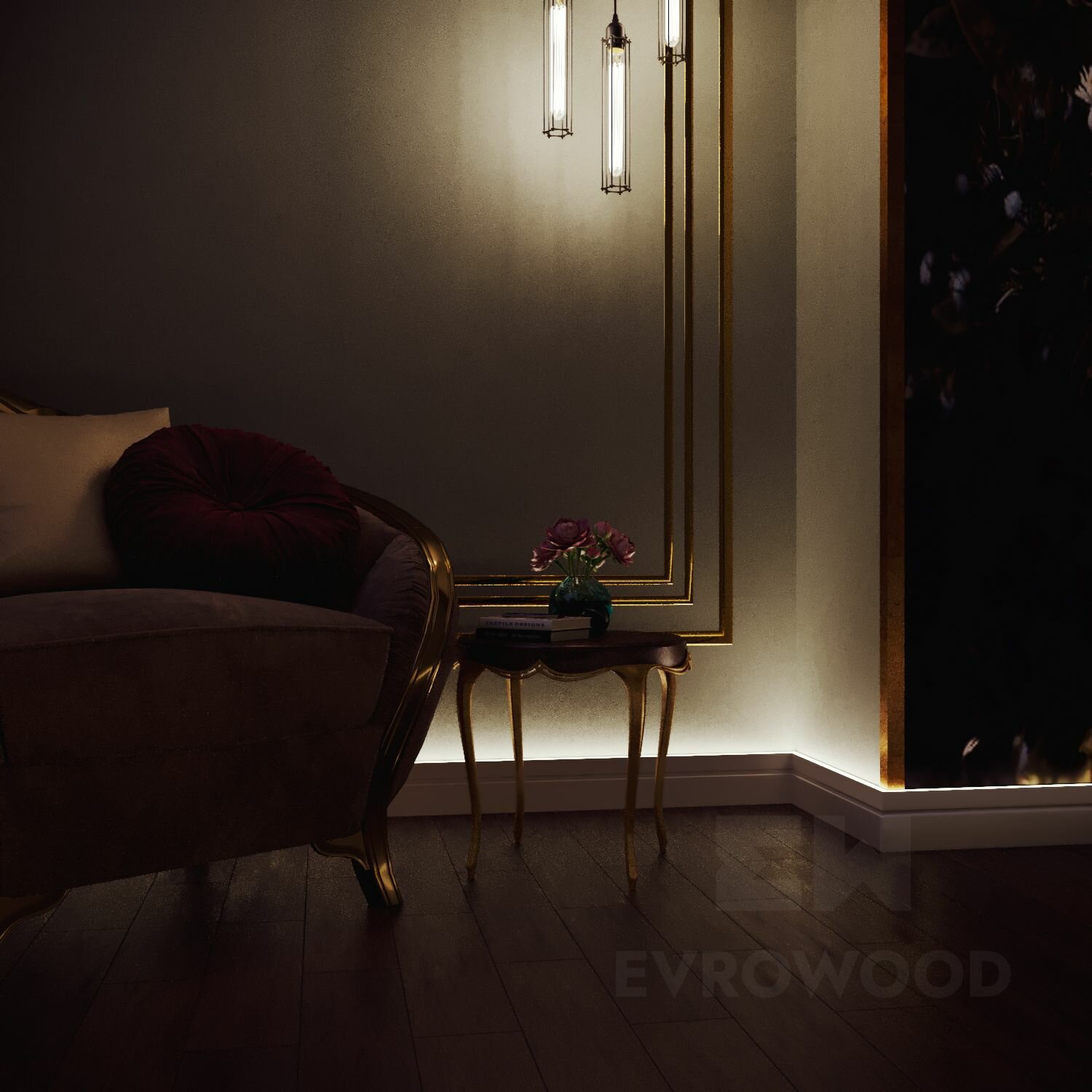 Плинтус напольный МДФ PN040LED 80х12х2000 EVROWOOD с подсветкой 5ШТ