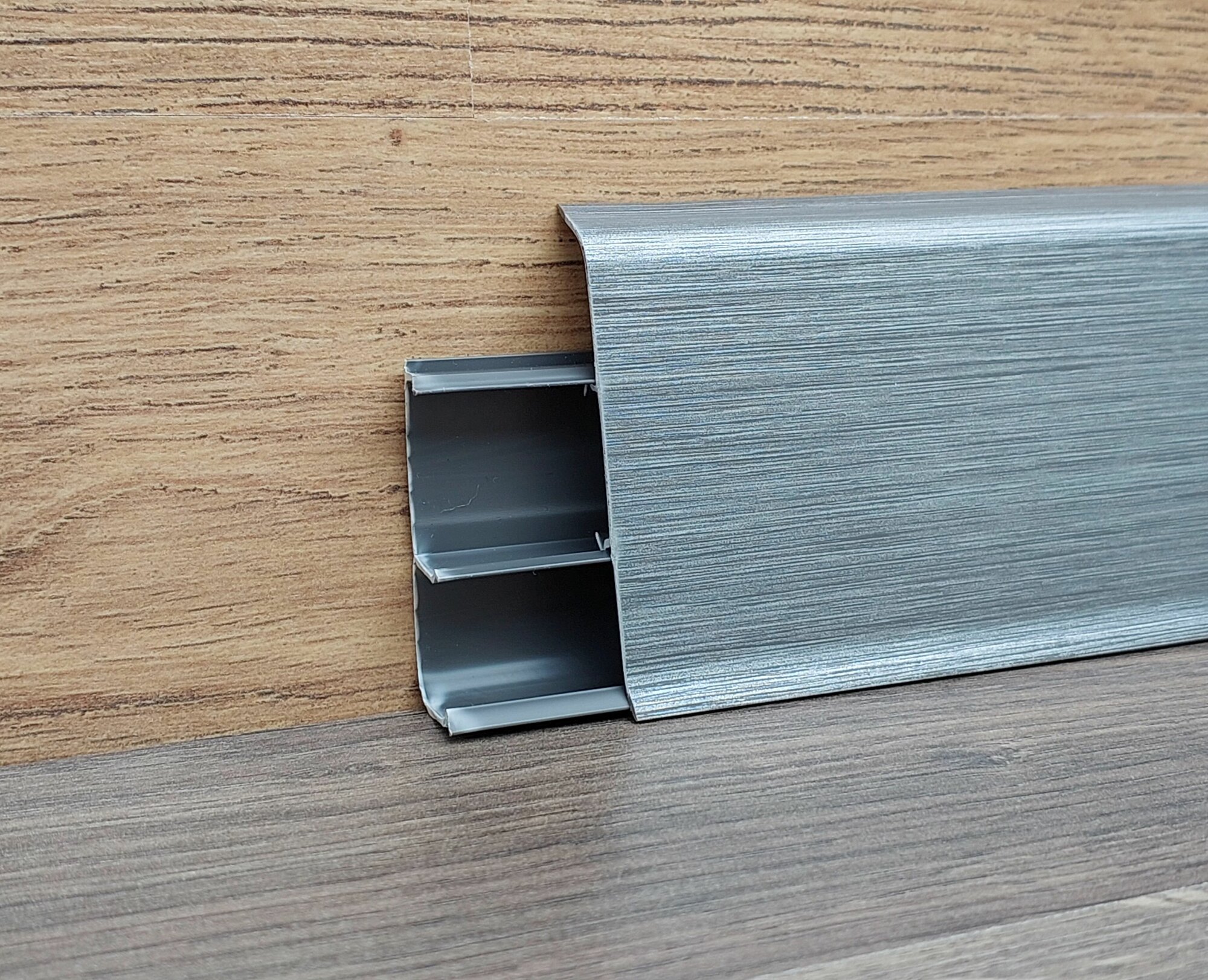 Купить Пластиковый плинтус Идеал Деконика 70 мм Алюминий тёмный 187
