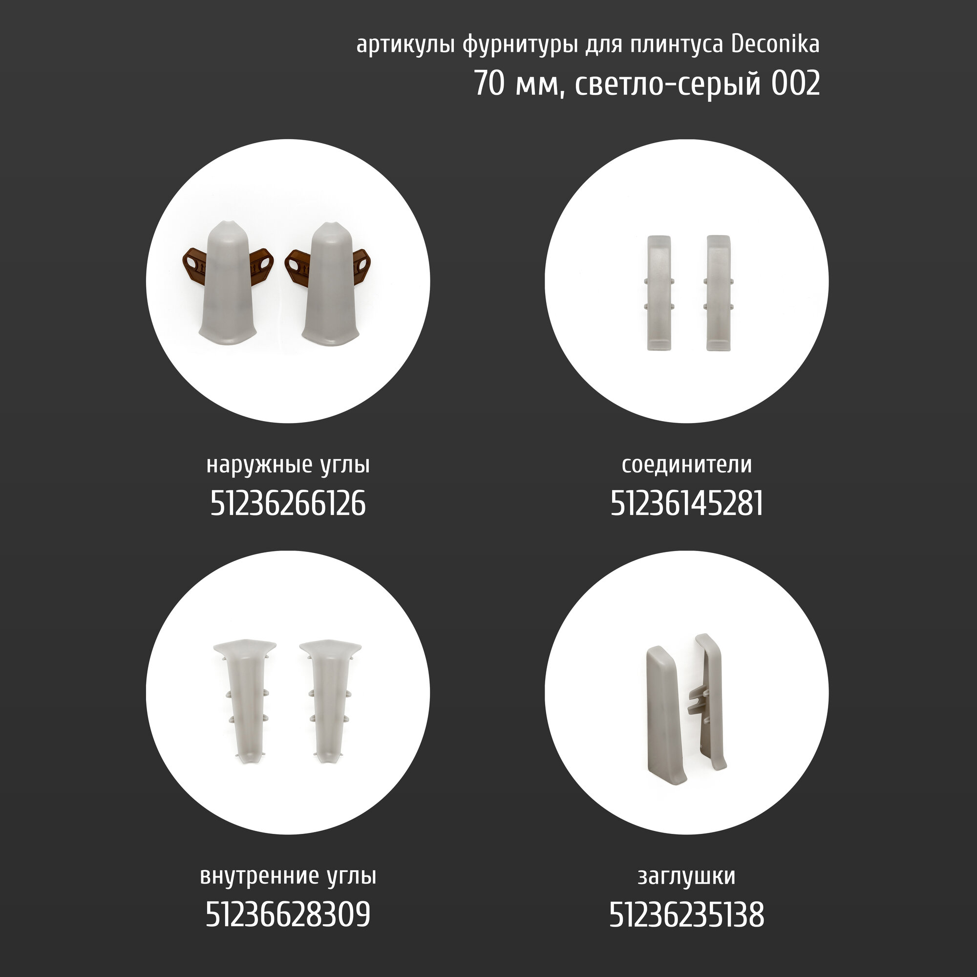 Плинтус напольный пластиковый ПВХ 10 шт. DECONIKA размер 70 мм 2,2м, цвет Светло-серый