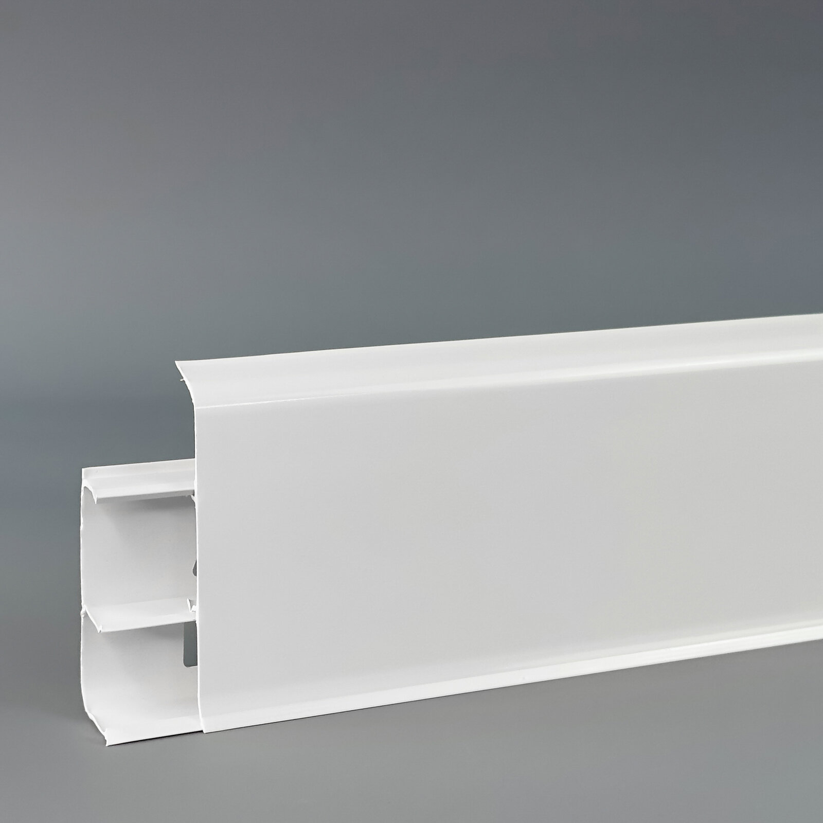 Плинтус напольный с кабель-каналами 85мм 2,2м "Деконика", 001-G Белый глянцевый, 1 шт