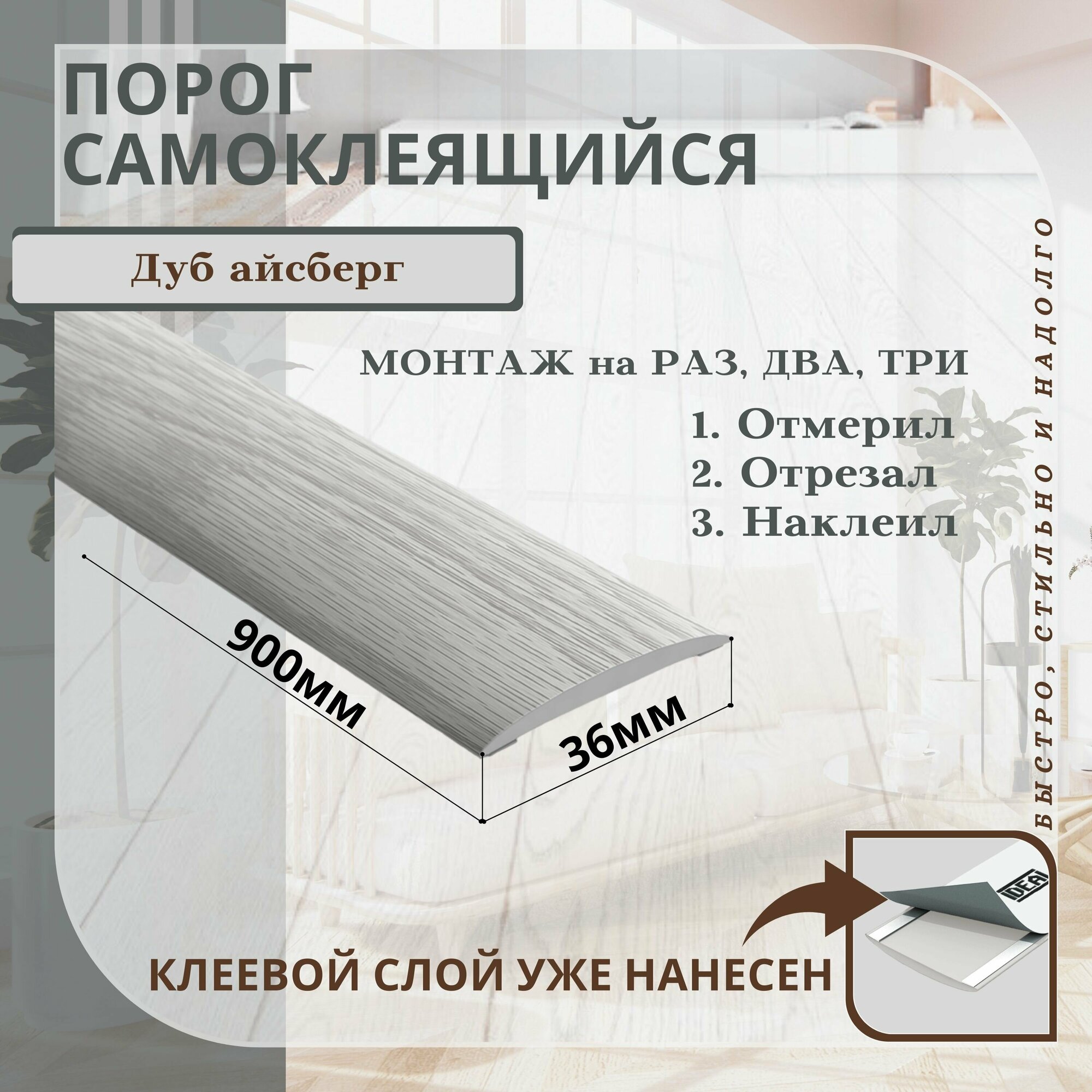 Порог для пола самоклеющийся идеал (IDEAL) длина 900 мм, ширина 36 мм, 230 Дуб айсберг