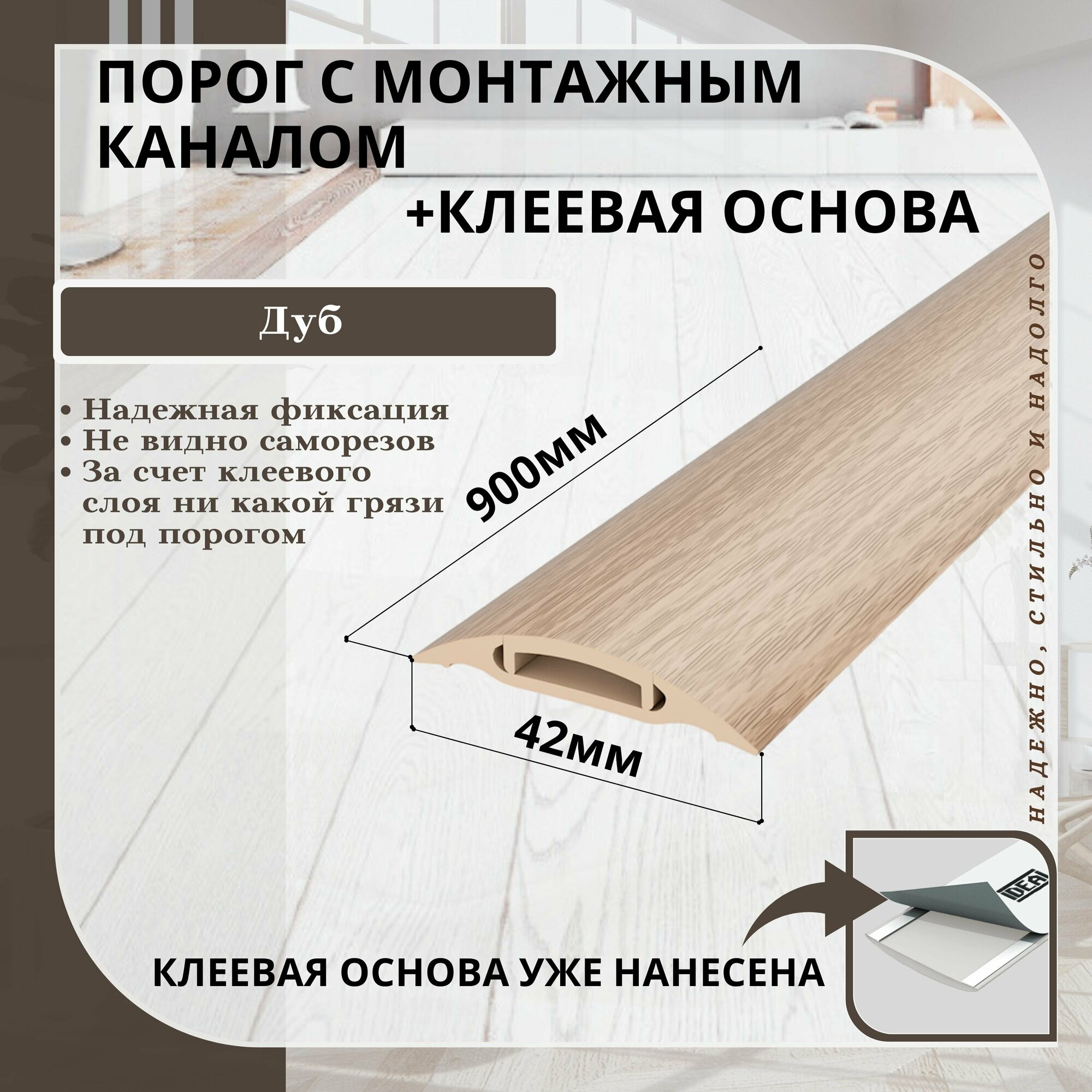 СохранитьПорог с монтажным каналом 42мм 0,9м "Идеал", 201 Дуб интересное: