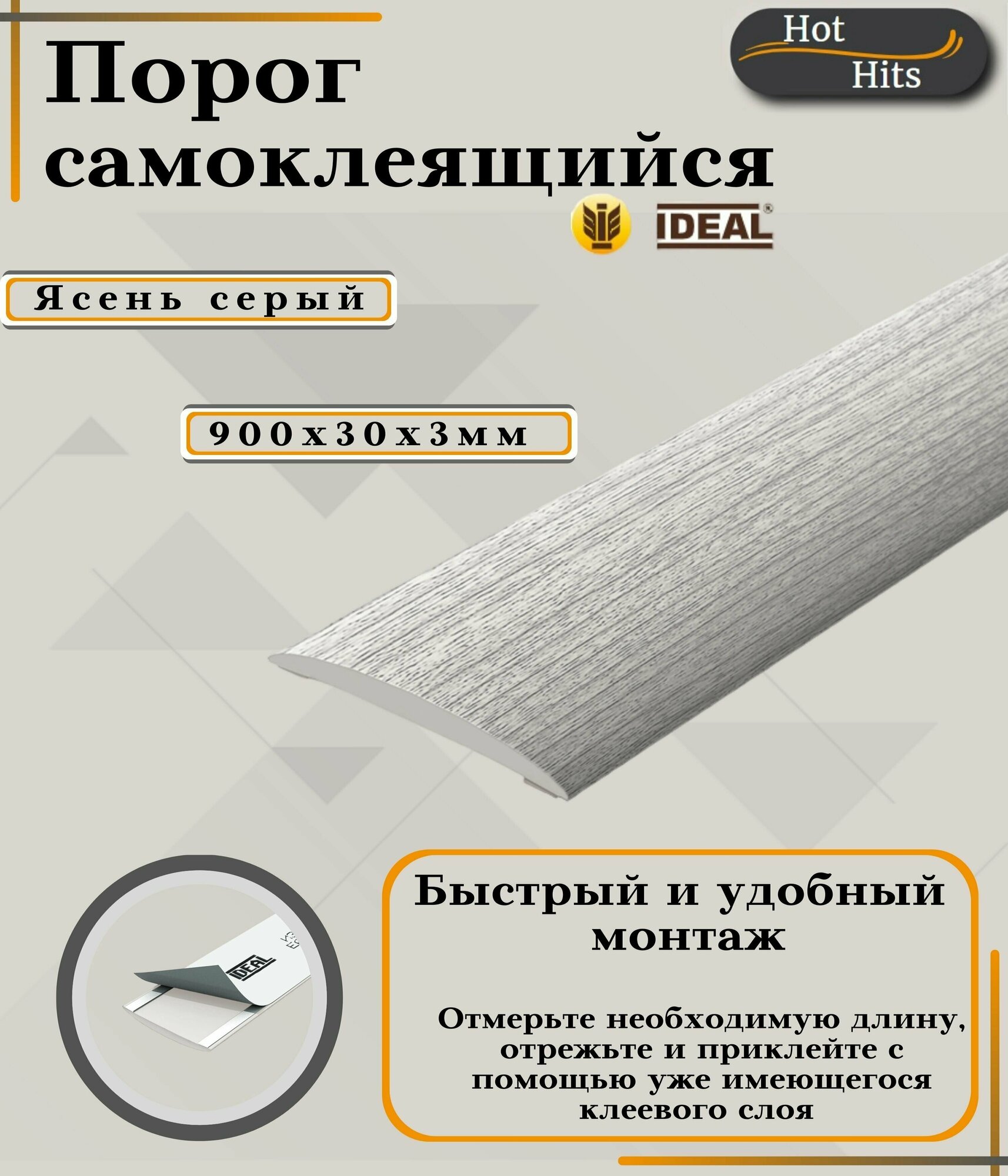 Порог самоклеящийся ПВХ для напольных покрытий IDEAL 36.900 ясень серый 36*900 мм-3шт