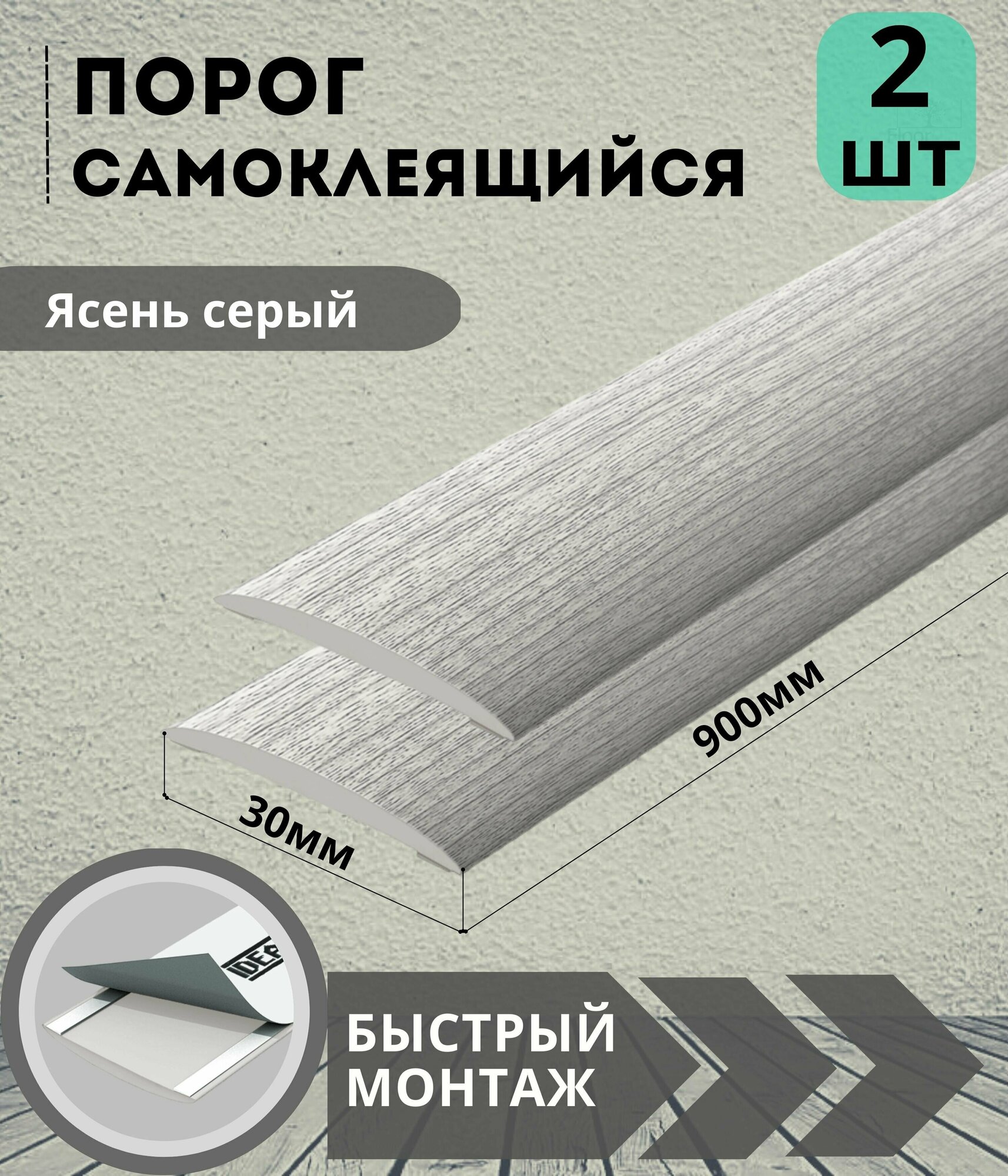 Порог ИЗИ 253 ясень серый, 30x900 мм, самоклеющийся пластиковый, 1 шт.