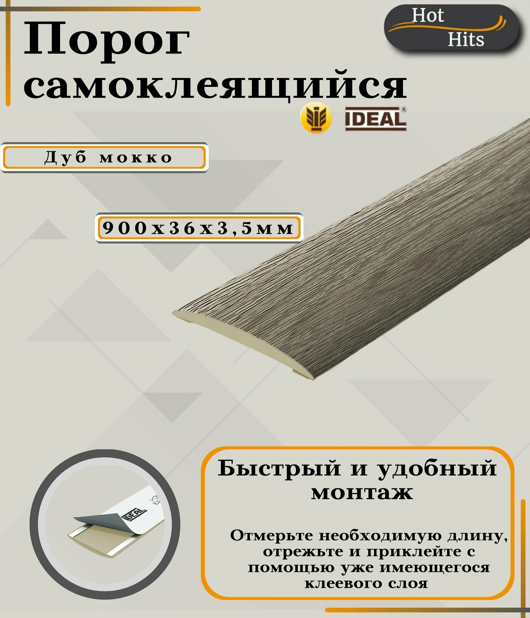 Порог самоклеющийся для пола 36 мм, длина 0,9 м, IDEAL (Идеал) ИЗИ, пластиковый (ПВХ), дуб коньячный 206