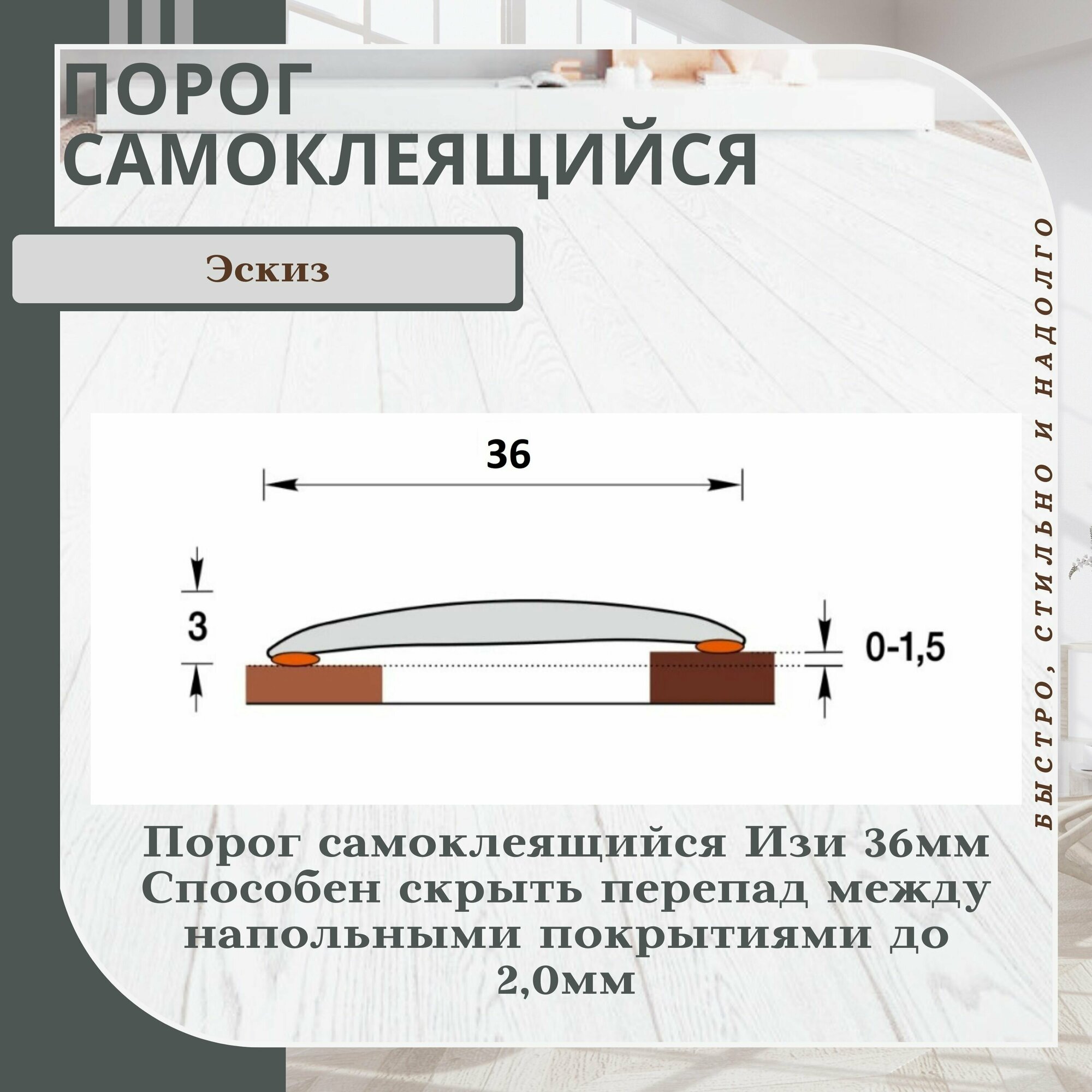 Порог самоклеющийся для пола 36 мм, длина 1,6 м, Идеал (Ideal) ИЗИ, пластиковый (ПВХ), дуб северный 213