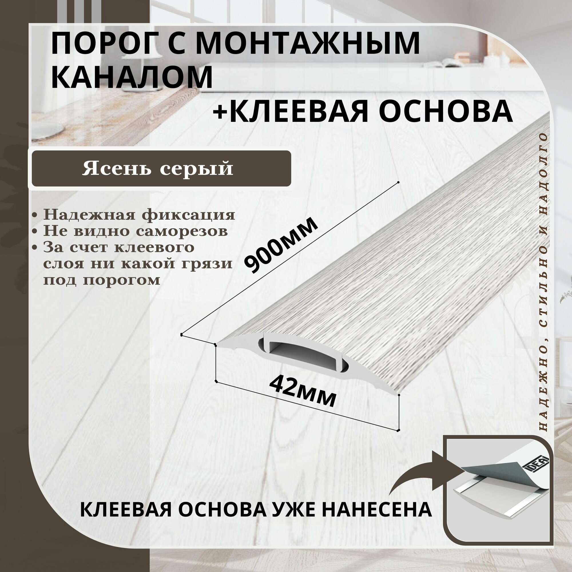 СохранитьПорожек IDEAL ИЗИ с монтажным каналом, 42х6,8х0,9 м, ясень серый 2 шт в упаковке интересное: