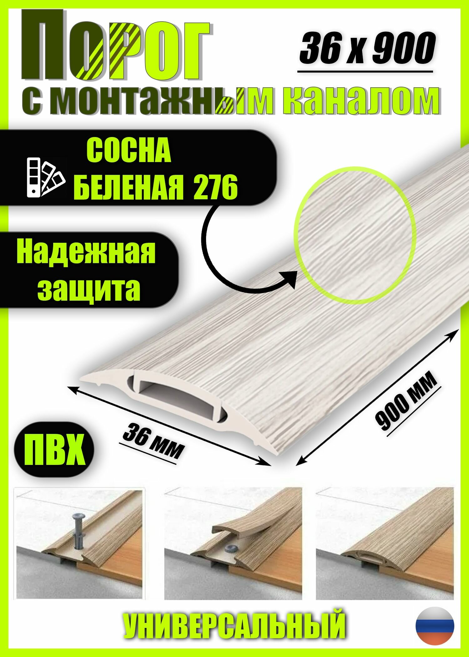СохранитьПорог с монтажным каналом, 276 Сосна беленая, пластиковый, 36x900 мм, 1 шт. интересное: