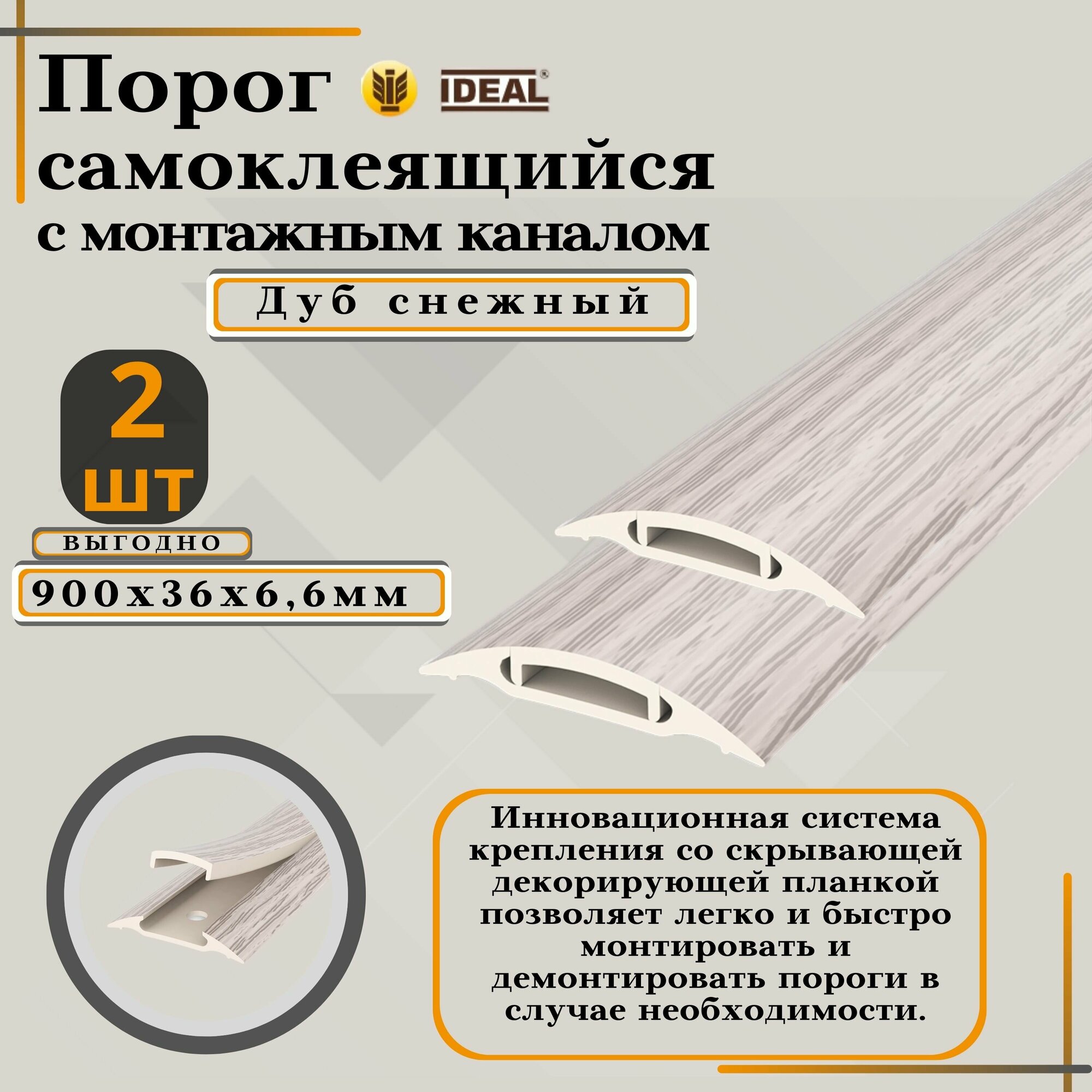 СохранитьПорог с монтажным каналом, 215 Дуб снежный, пластиковый, 36x900 мм, 2 шт. интересное: