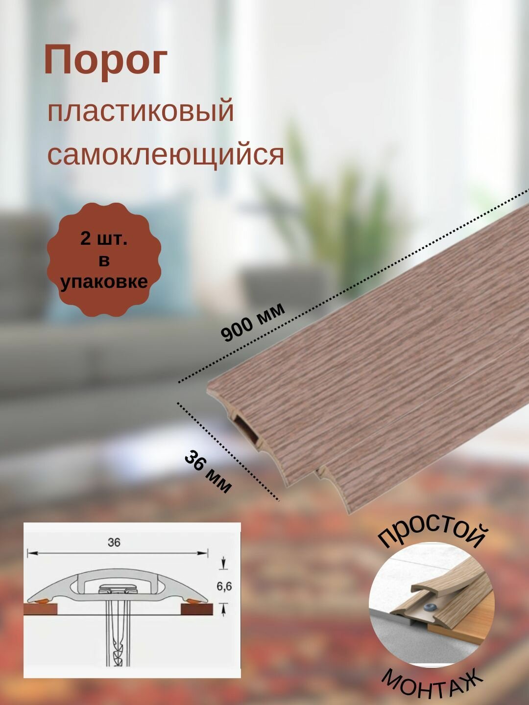 Порог ПВХ самоклеящийся 900х36 мм дуб северный, 1 шт. в заказе