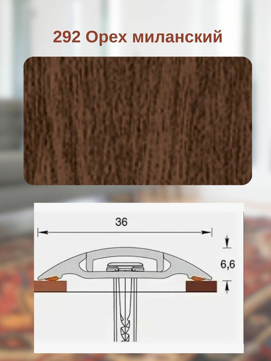 Порог с монтажным каналом 36мм 0,9м "Идеал" 292 Орех миланский