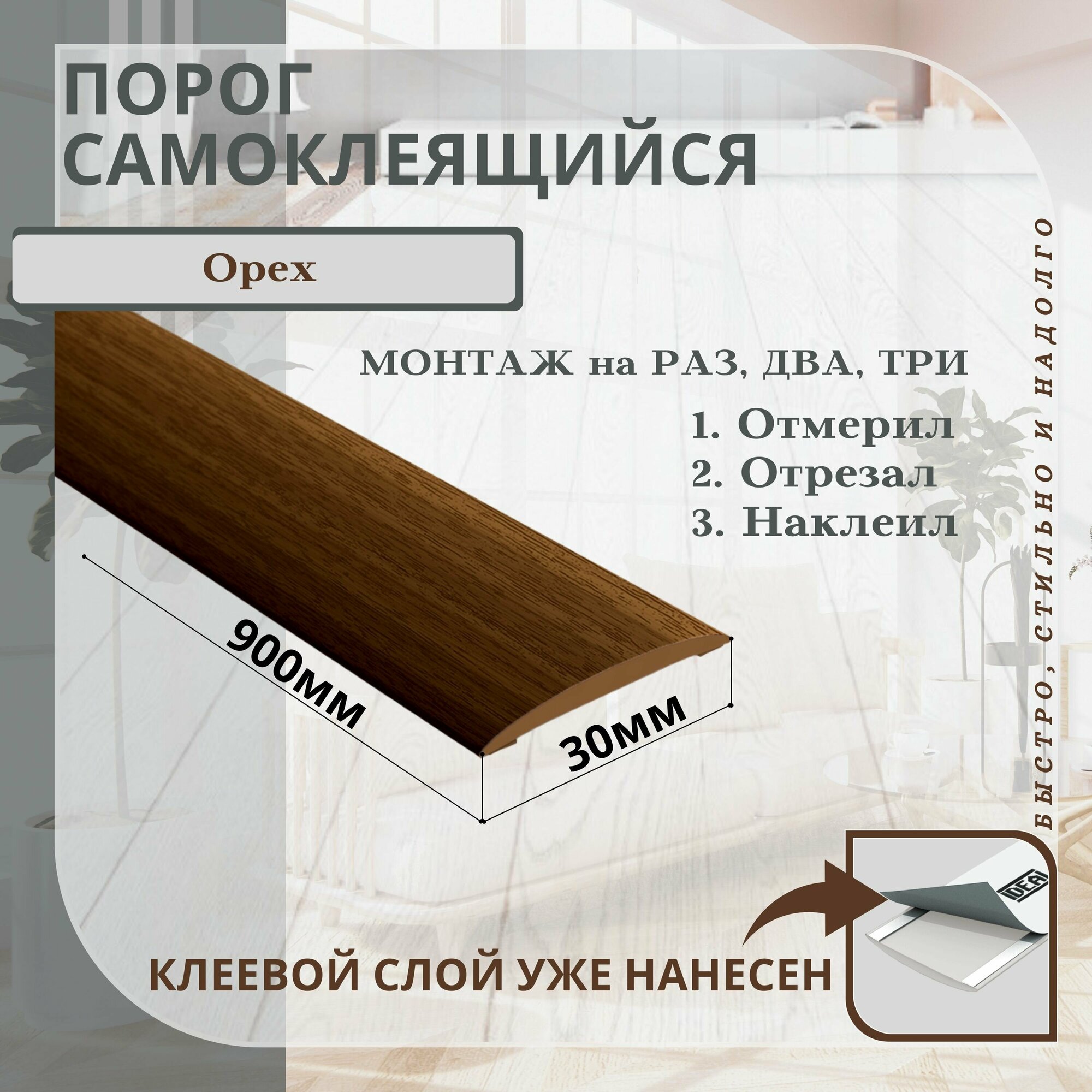 Порог самоклеящийся из пластика ИЗИ 30.900.292 для напольных покрытий; Орех миланский 30 х 900 мм