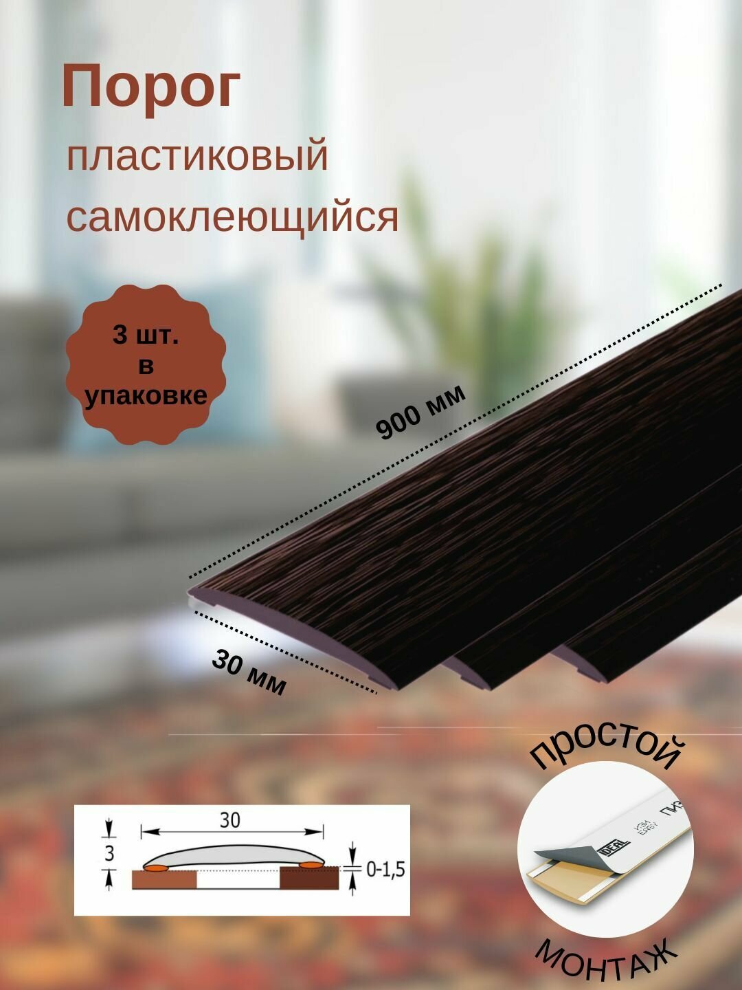 Купить Порог ИЗИ 302 венге черный, 30x900 мм, самоклеющийся пластиковый, 3 шт.